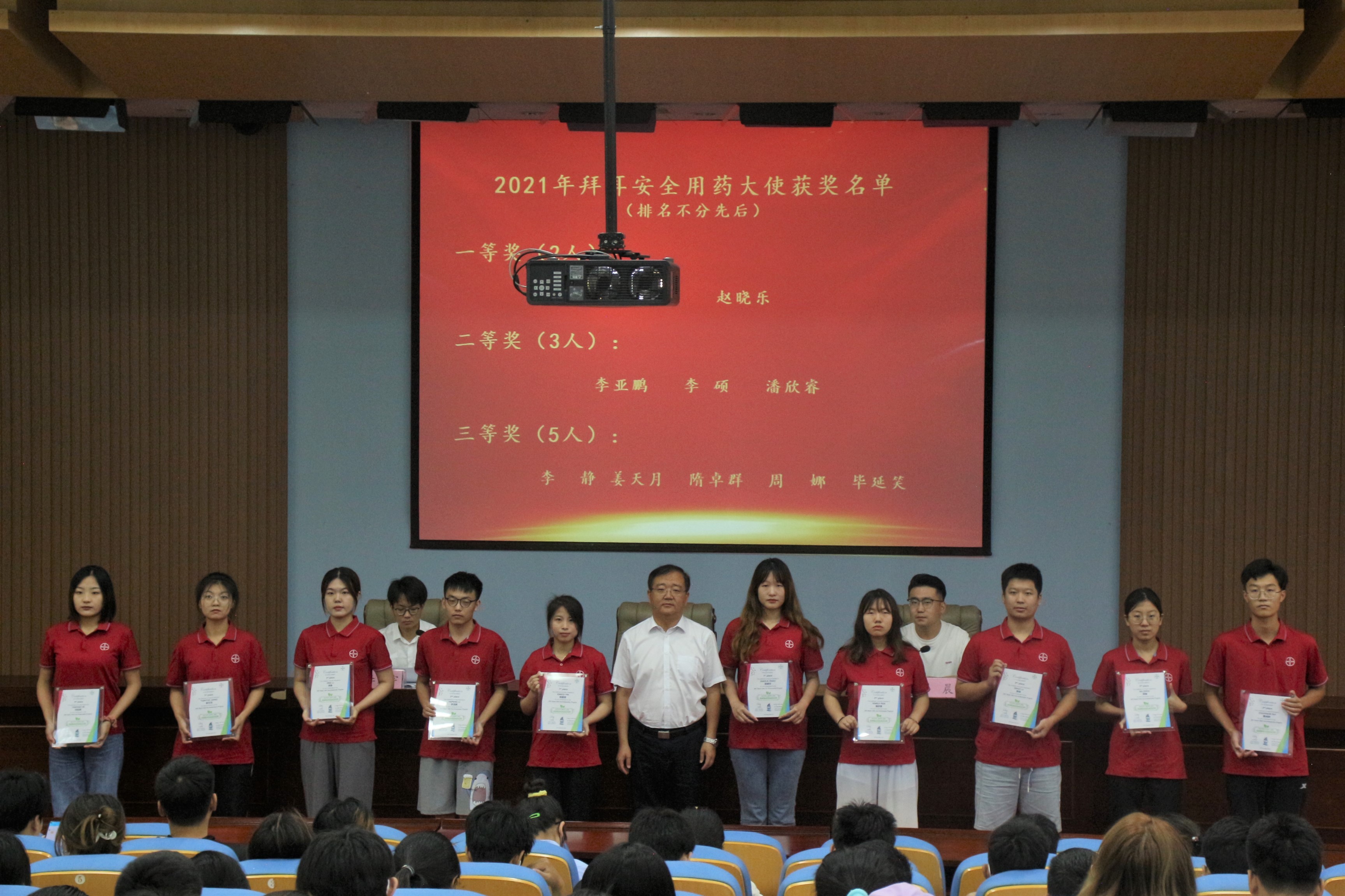 会上,李军为在2021年大学生志愿者暑期文化科技卫生“三下乡”社会实践和拜耳科学安全使用农药大使项目中表现优秀的同学颁发了荣誉证书和奖品。李军指出,近年来,学院主动对接乡村振兴战略,引导广大青年学生上好与现实相结合的“大思政课”,对促进地方经济建设和社会发展作出了积极的贡献。并对本次暑期社会实践提出期望和要求:一是要坚定理想信念,在社会实践中凝聚强大精神力量;二是要夯实专业知识,为乡村振兴注入植医动力。希望广大学生珍惜机会,在社会实践中锤炼品德,增长才干。在奉献社会、服务人民中受教育,砺意志,淬青春,练本领,长才干,做贡献。以实现中华民族伟大复兴为己任,增强做中国人的志气、骨气、底气,不负时代,不负韶华,不负党和人民的殷切期望,让青春在为祖国、为民族、为人民的不懈奋斗中绽放绚丽之花,以实际行动迎接党的二十大胜利召开。