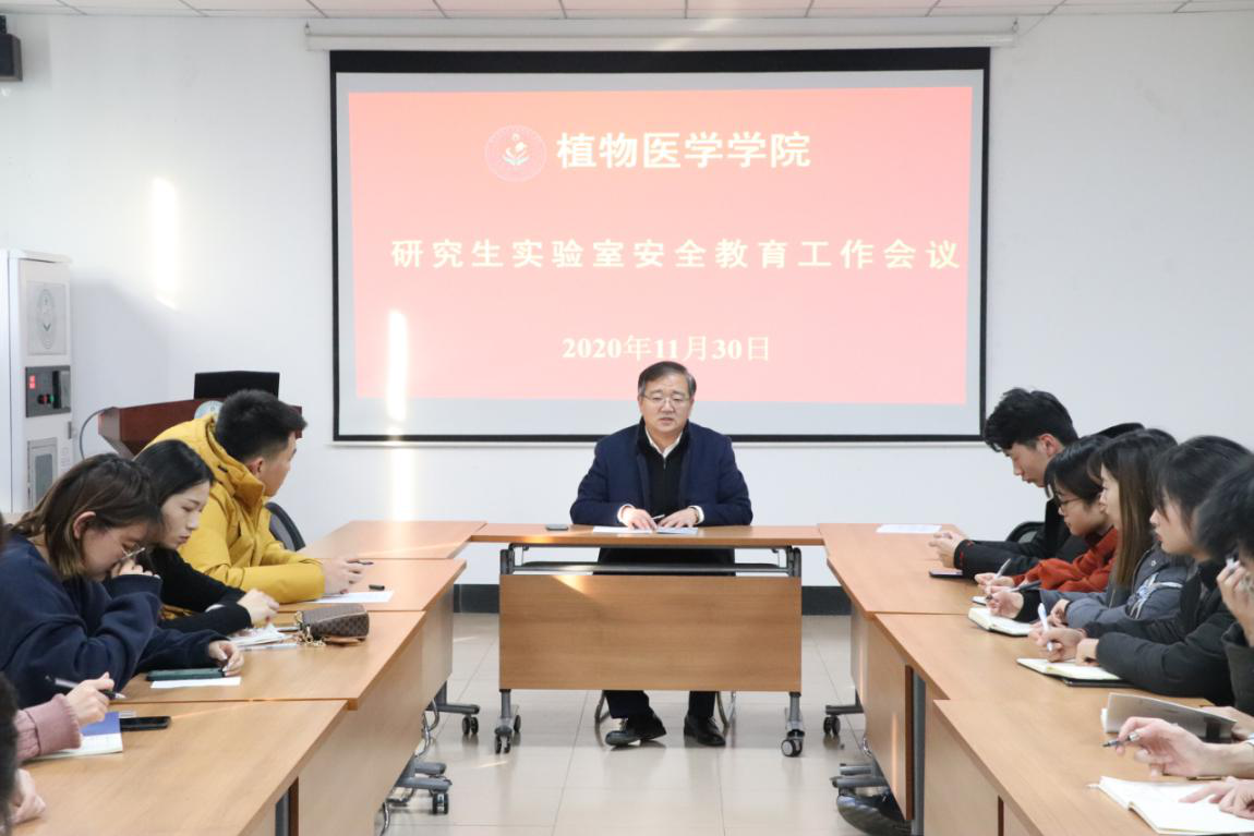 为进一步强化研究生实验室安全意识,11月30日,植物医学学院在生物楼N406会议室召开研究生实验室安全教育工作会议,全体研究生会干部及各班级学生干部参加,会议由学院党总支副书记、副院长李军主持。
