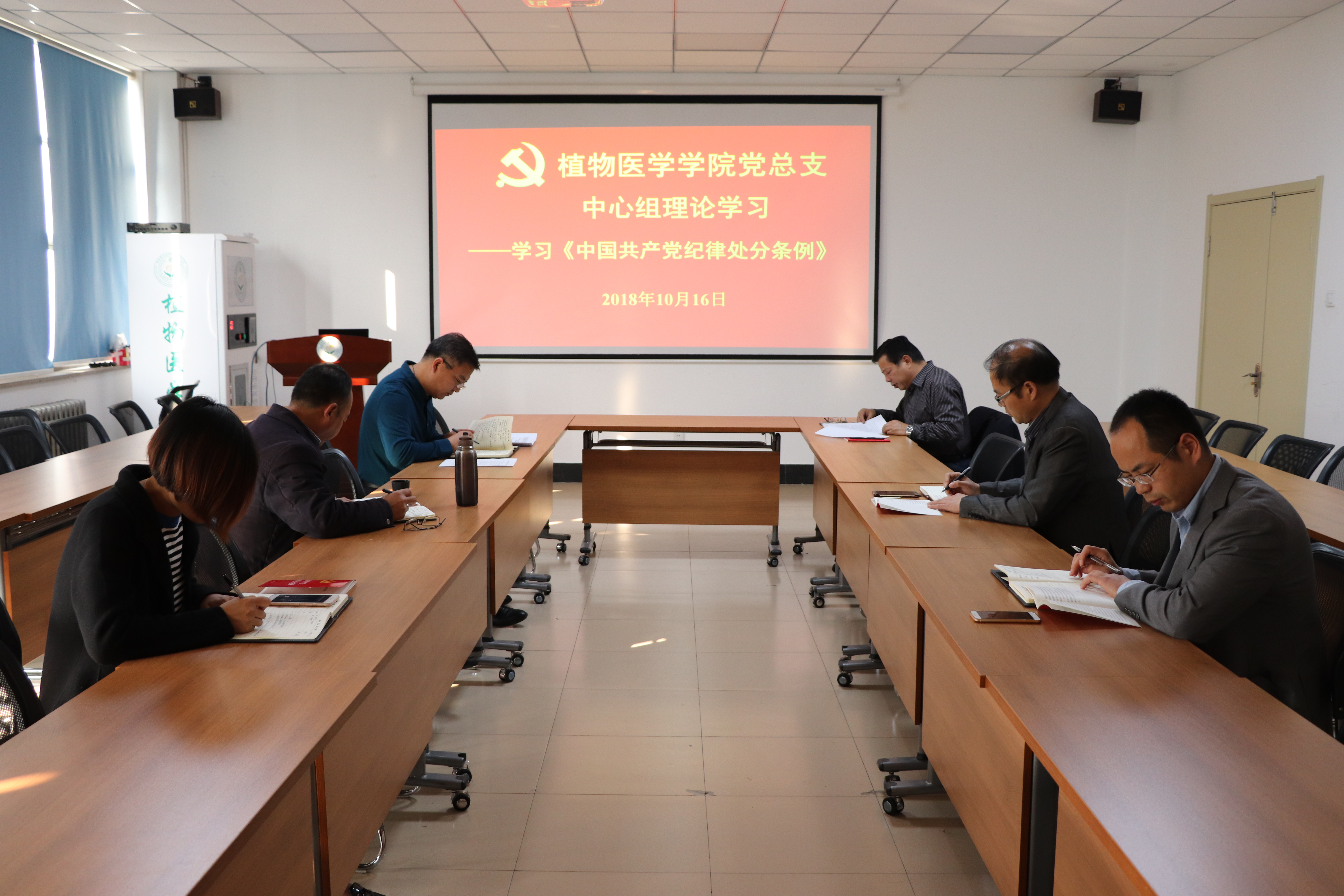 10月16日,植物医学学院党总支理论学校中心组在学院会议室专题学习了《中国共产党纪律处分条例》。会议由党总支书记袁忠林主持,理论学校中心组全体成员参加。