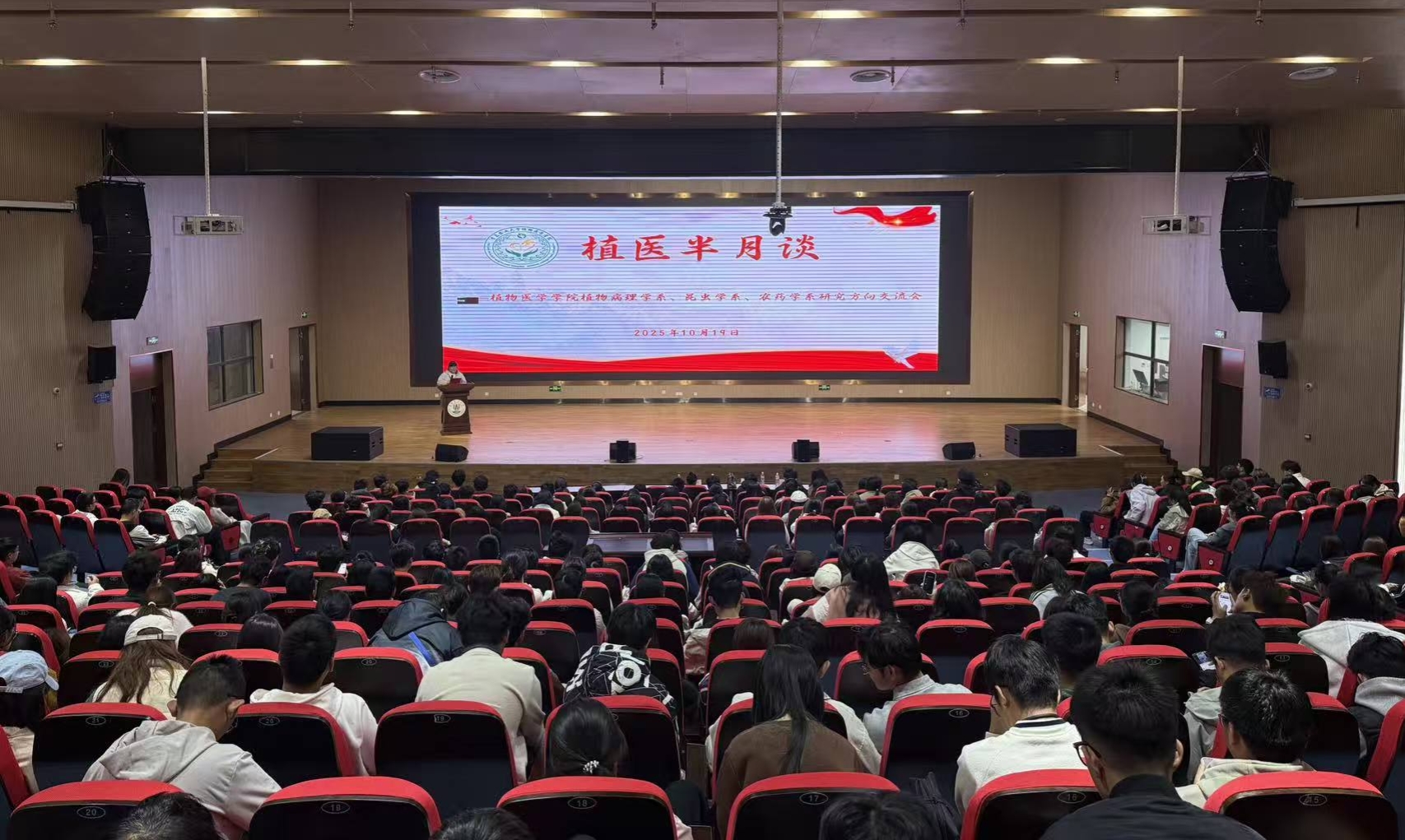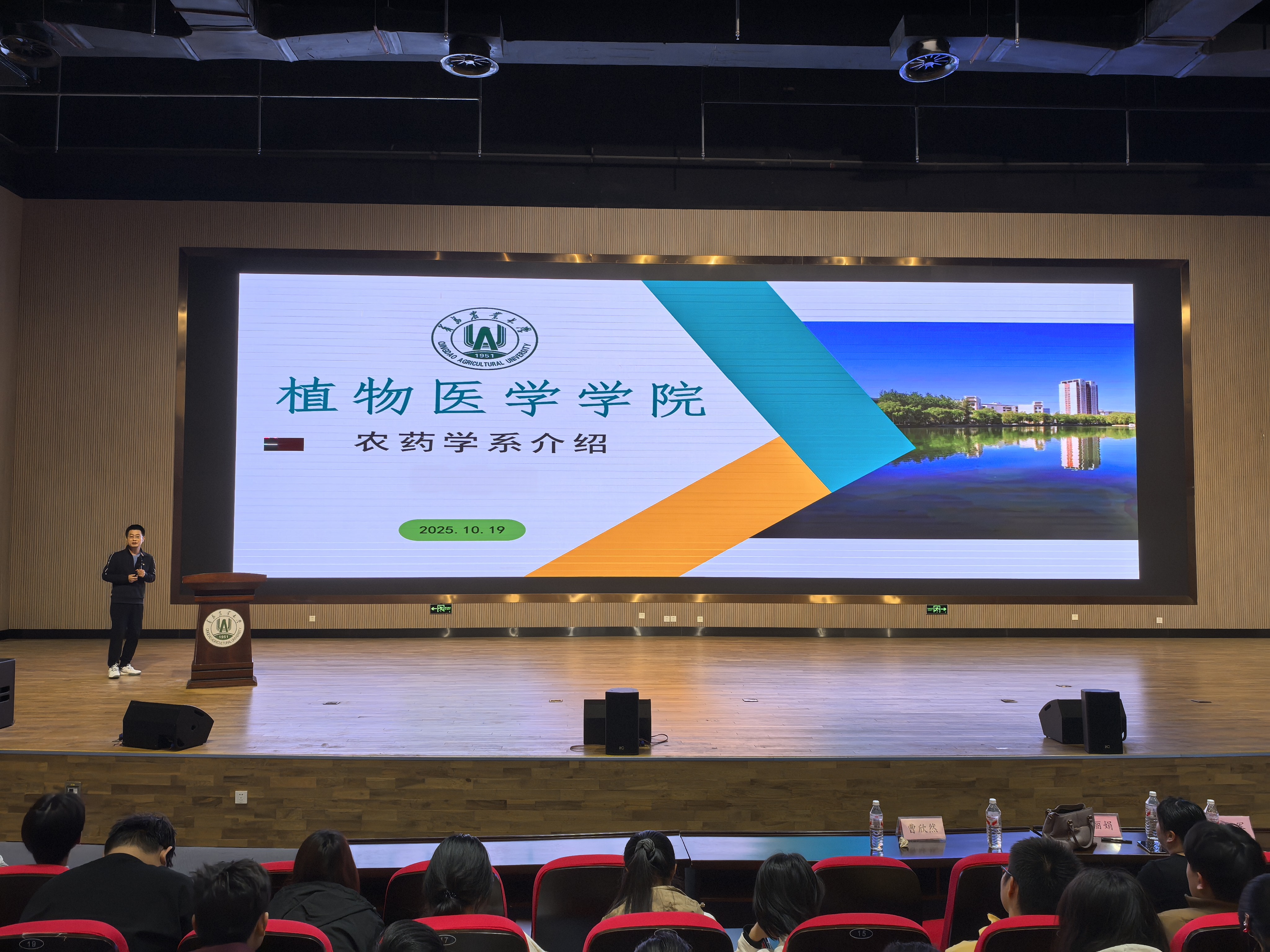 为切实增进2025级同学对植物医学学院及相关专业的了解,有效帮助同学们明晰学业重点,树立专业学习目标,10月19日,青岛农业大学植物医学学院于平度校区博学楼报告厅举办“植医半月谈”——植物医学学院植物病理学系、昆虫学系、农药学系研究方向交流会。会议邀请学院植物病理学系曹欣然副教授、昆虫学系系主任孙丽娟副教授、农药学系系主任杨从军副教授进行专题交流与分享,学院党委宣传委员、团委书记张琳及2025级全体学生参会,会议由辅导员姚延珠主持。