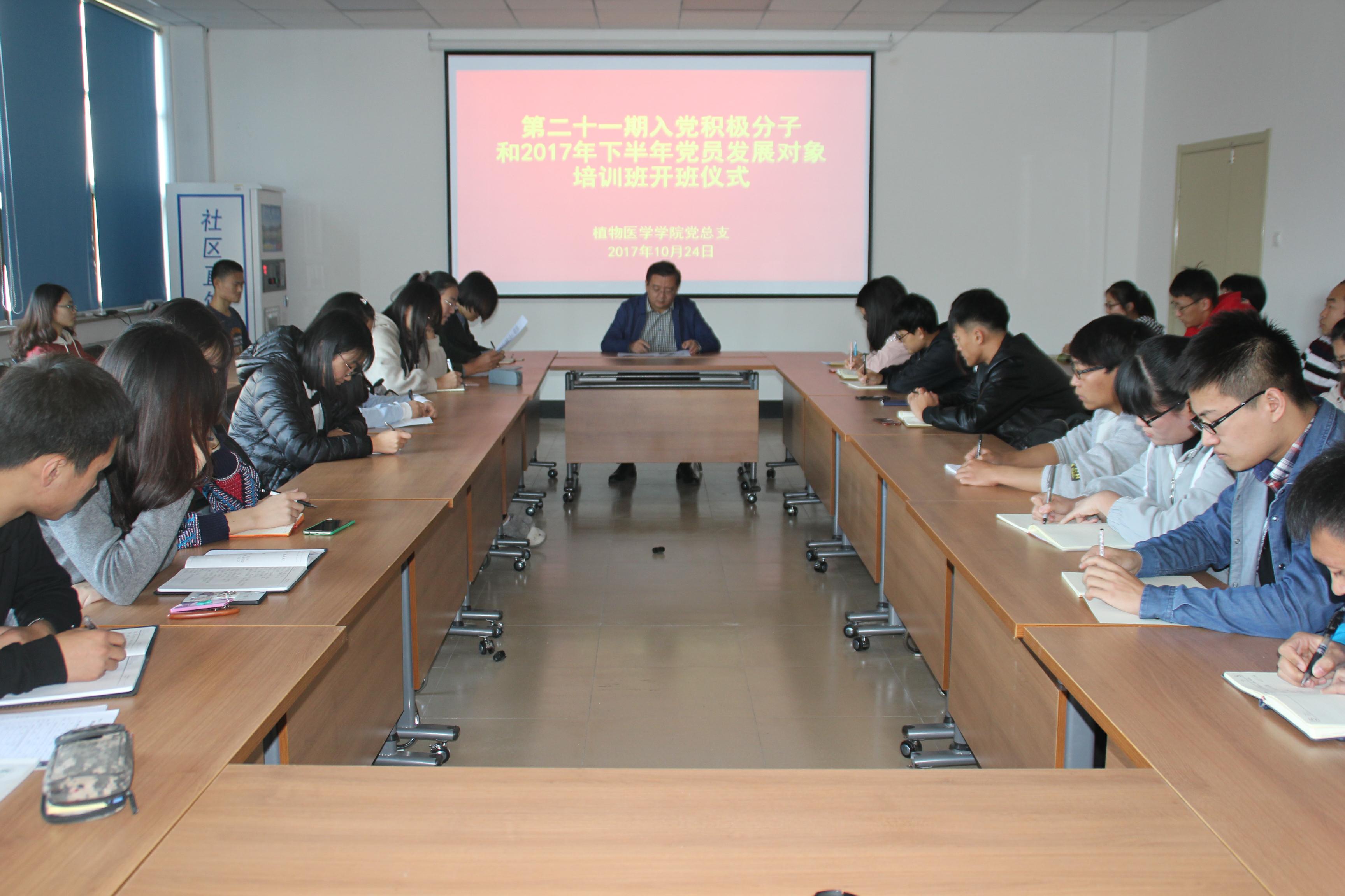 10月24日,植物医学学院于N406举行了第二十一期入党积极分子和2017年下半年党员发展对象培训班开班仪式。植物医学学院党总支副书记、副院长李军,学院团委书记马伟萍,辅导员王丽静出席仪式,仪式由王丽静主持。
