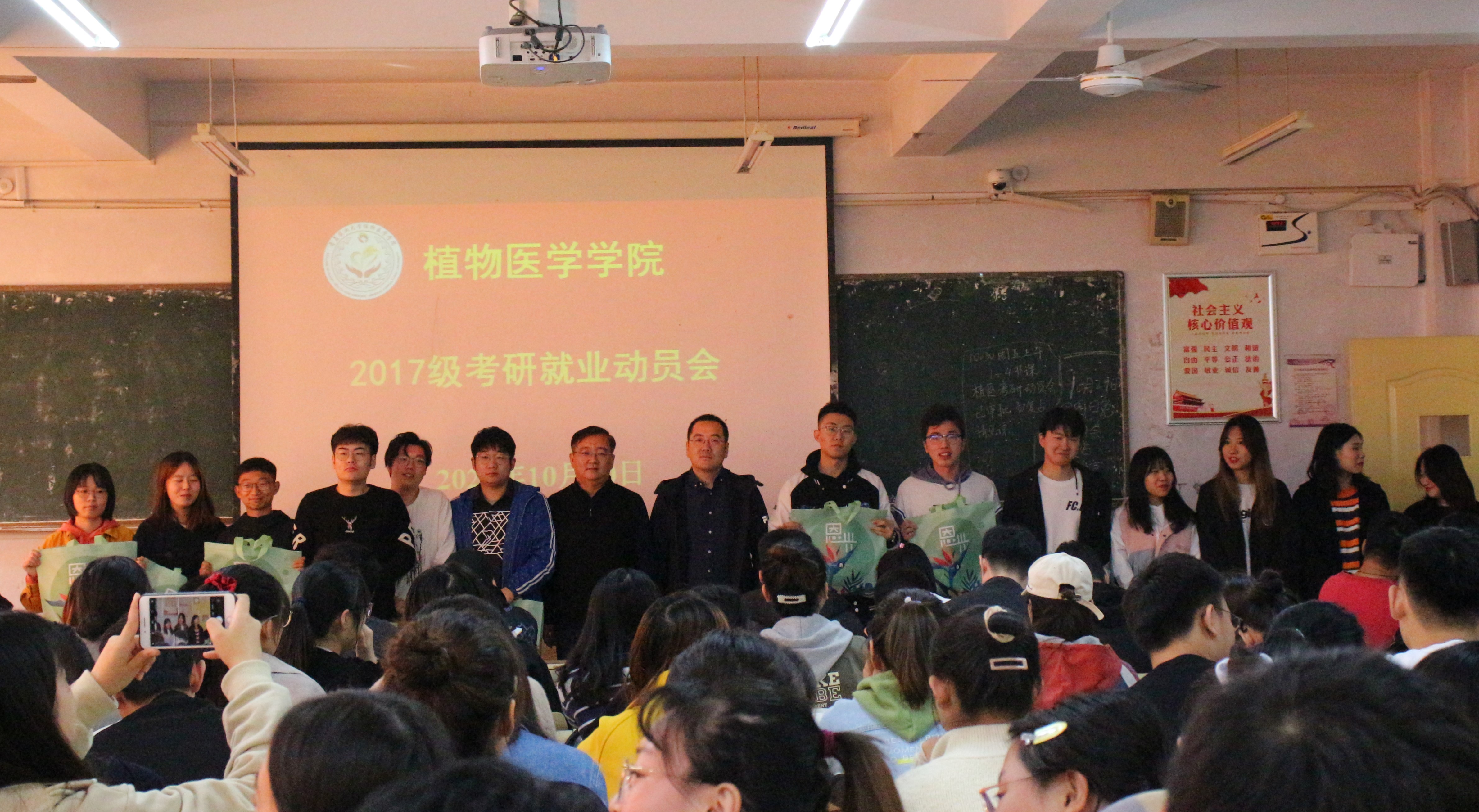 为鼓励学生调整就业考研状态,了解就业信息动态,提高学习、求职效率,推进学院考研就业工作稳步进行,10月30日,植物医学学院召开考研就业动员会,学校就业指导服务中心老师吕国莹,山东康乔生物科技有限公司副总经理祝青波,人力资源部主管任红,辅导员丁晨、姚延珠出席会议, 2021届全体毕业生参加,会议由学院党总支副书记、副院长李军主持。