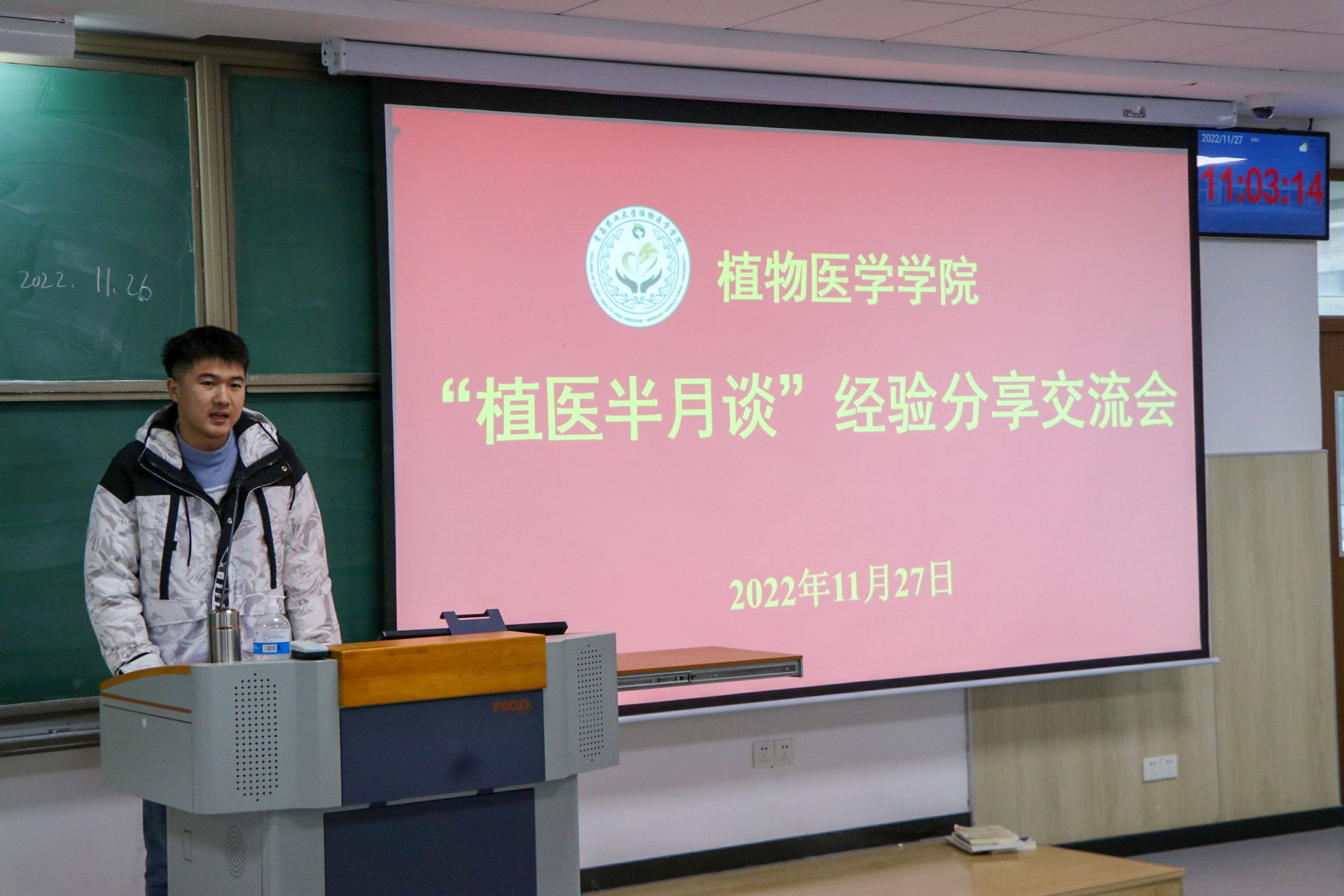 11月27日,青岛农业大学植物医学学院在平度校区博学楼B113举办“植医半月谈” --经验分享交流会,优秀学生代表孙子恒和范林鑫进行经验分享,学院2022级全体学生参加。