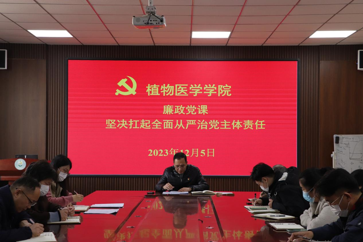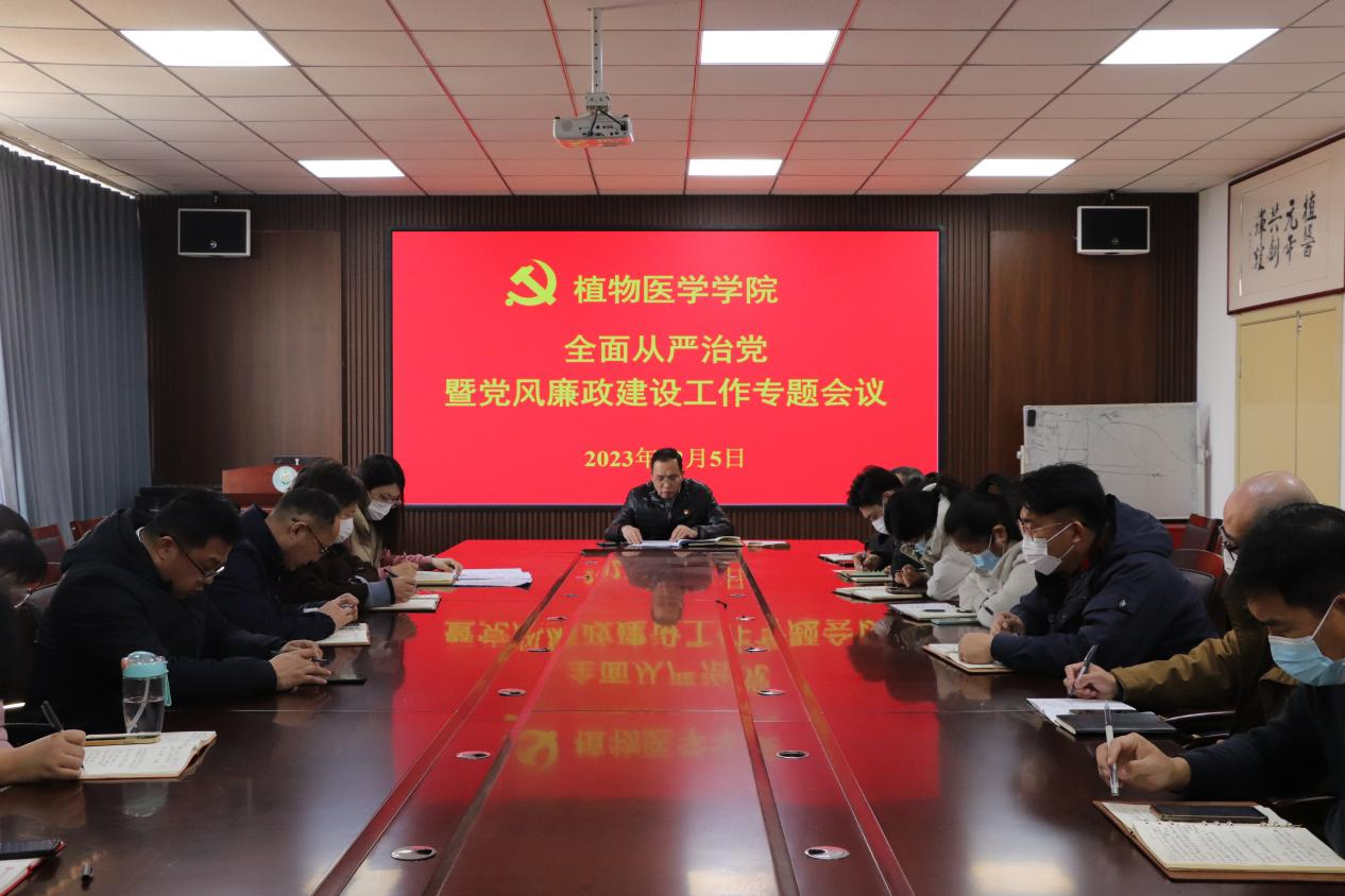 12月5日,青岛农业大学植物医学学院在学院会议室召开全面从严治党暨党风廉政建设工作专题会议,会议由学院党委书记韩强主持,学院党委委员、专职组织员、各支部委员、科级干部参加。