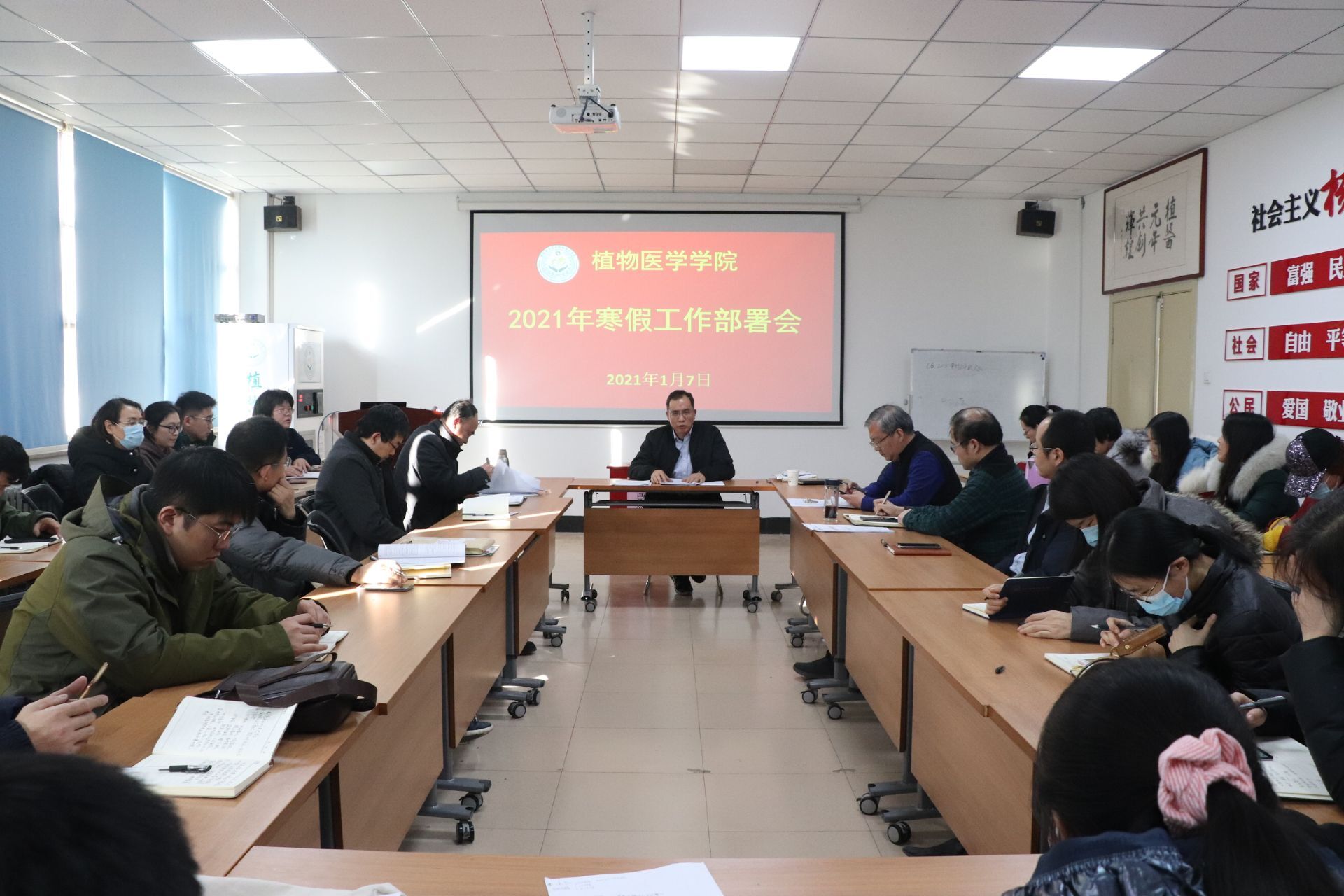 1月7日,青岛农业大学植物医学学院在学院会议室召开2021年寒假工作部署会,学院党政领导和全体教职工参加,会议由学院党总支书记韩强主持。