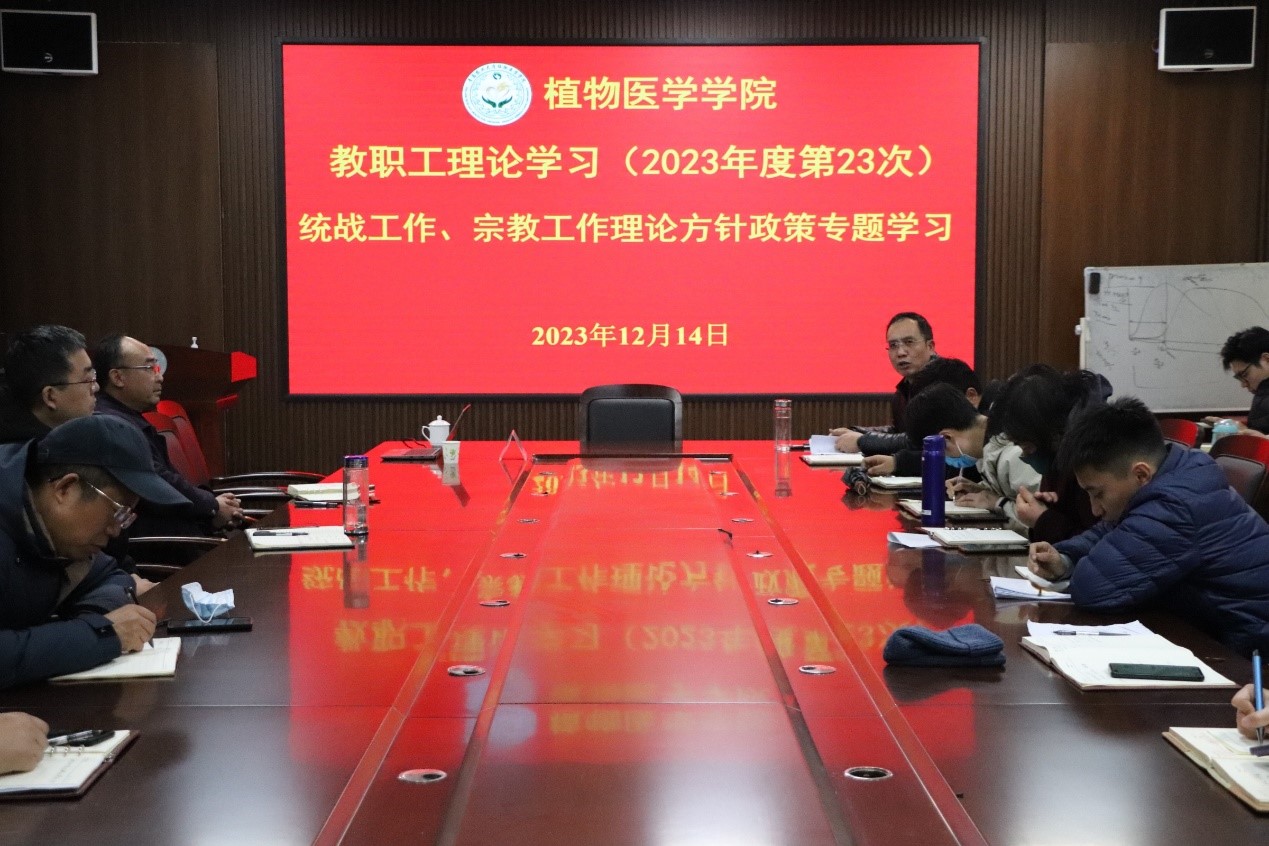 12月14日,青岛农业大学植物医学学院于学院会议室开展2023年度第23次教职工理论学习,会议由学院党委书记韩强主持,全体教职工参加。