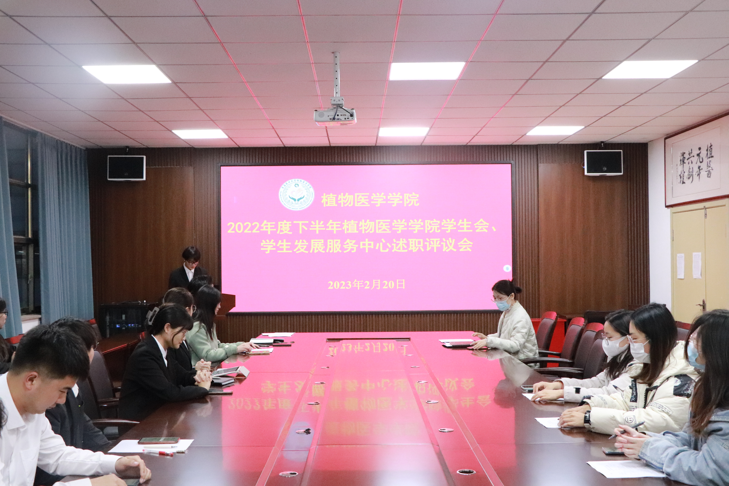 2月20日,植物医学学院在学院会议室召开学生会、学生发展服务中心述职评议会。植物医学学院党委宣传委员、团委书记张琳,校学生会主席团成员田帅,社会实践指导中心主任王雅萱及学生会、学生发展服务中心各部门部长以及学生代表参加此次会议。