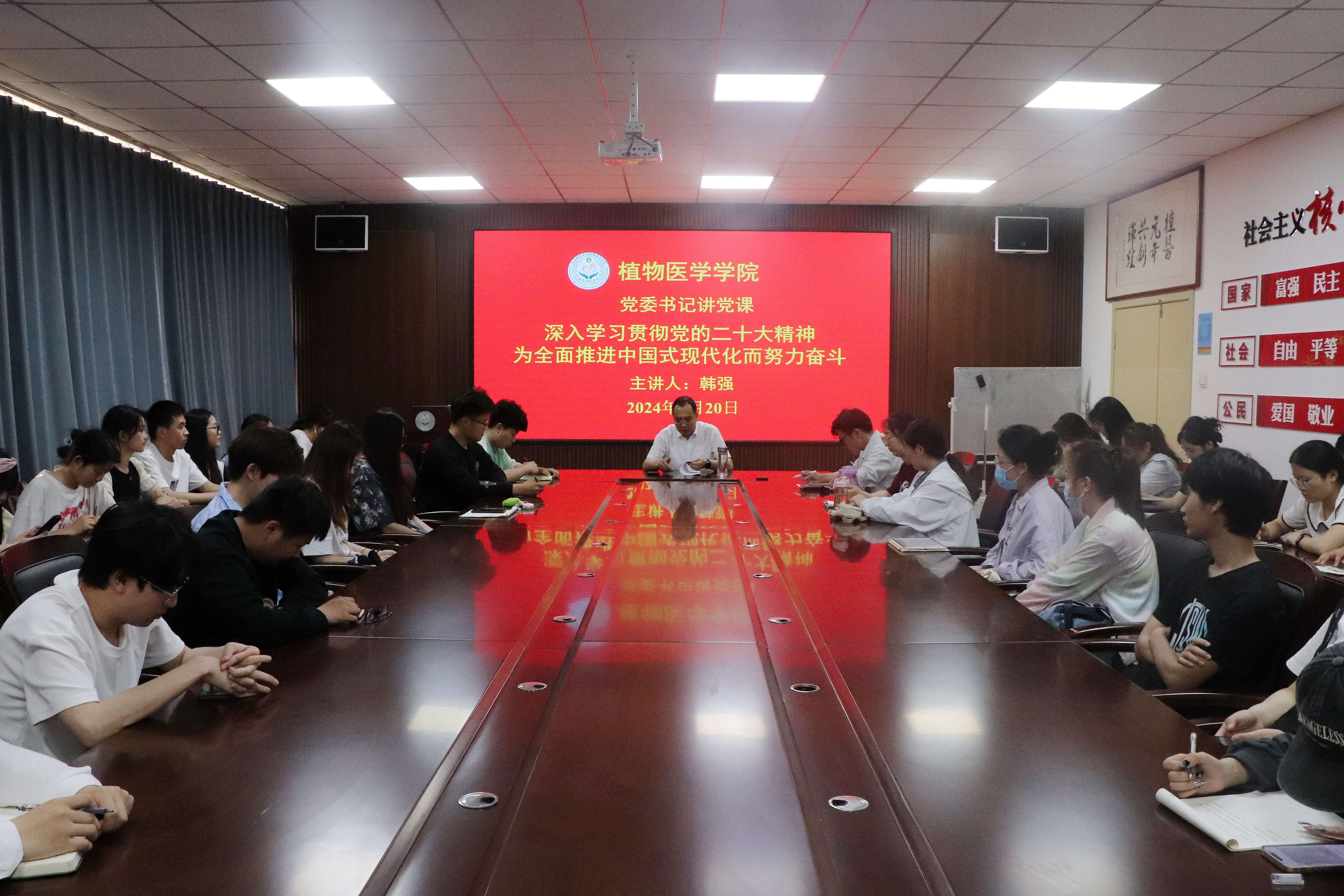 为进一步推进党员发展工作,提高入党积极分子和党员发展对象的思想政治理论水平,端正入党动机,坚定理想信念, 5月20日,青岛农业大学植物医学学院党委书记韩强为第三十四期入党积极分子和2024年上半年党员发展对象讲授专题党课,辅导员房明主持。