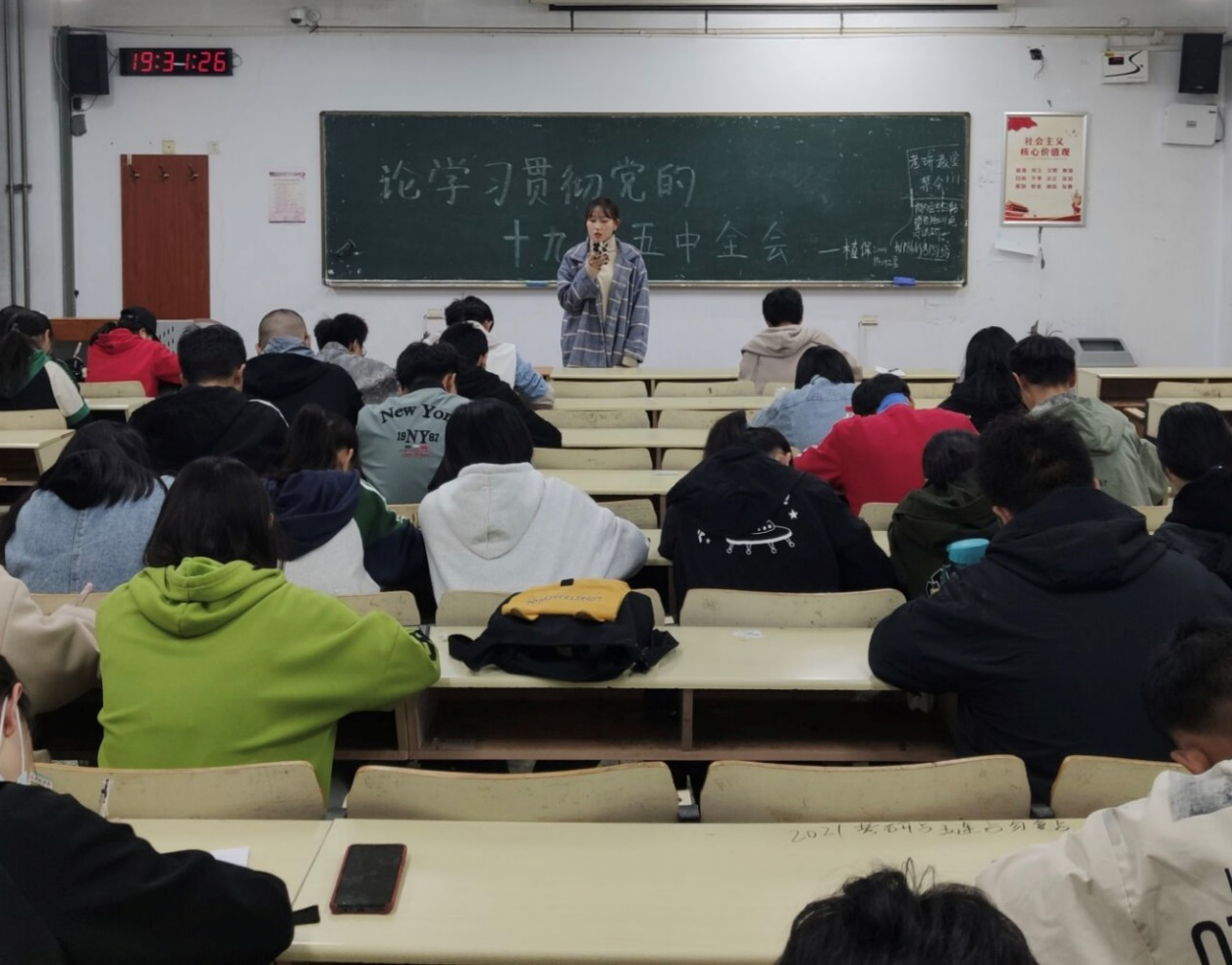 通过此次团课的学习,同学们对党的十九届五中全会有了新的认识和了解,会议精神也激励着同学们努力学习,提升自己,为国家的伟大复兴事业添砖加瓦。