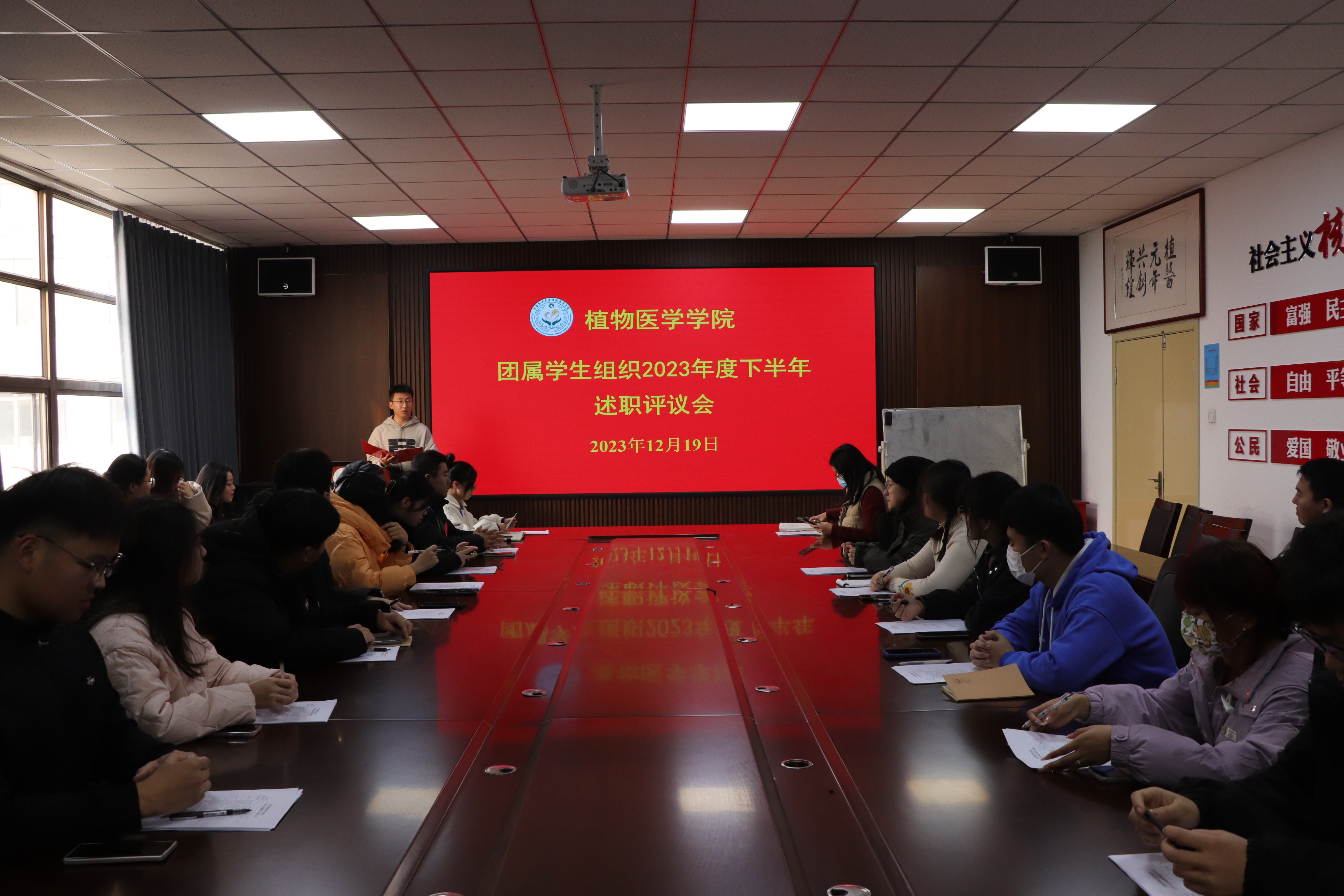 12月19日,青岛农业大学植物医学学院在学院会议室召开团属学生组织2023年度下半年述职评议会。学院党委宣传委员、团委书记张琳,校学生会青年发展部部长朱道琨,校团委社会实践指导中心主任孙梦萍,学生会、学生发展服务中心各部门部长,学生代表参加会议。