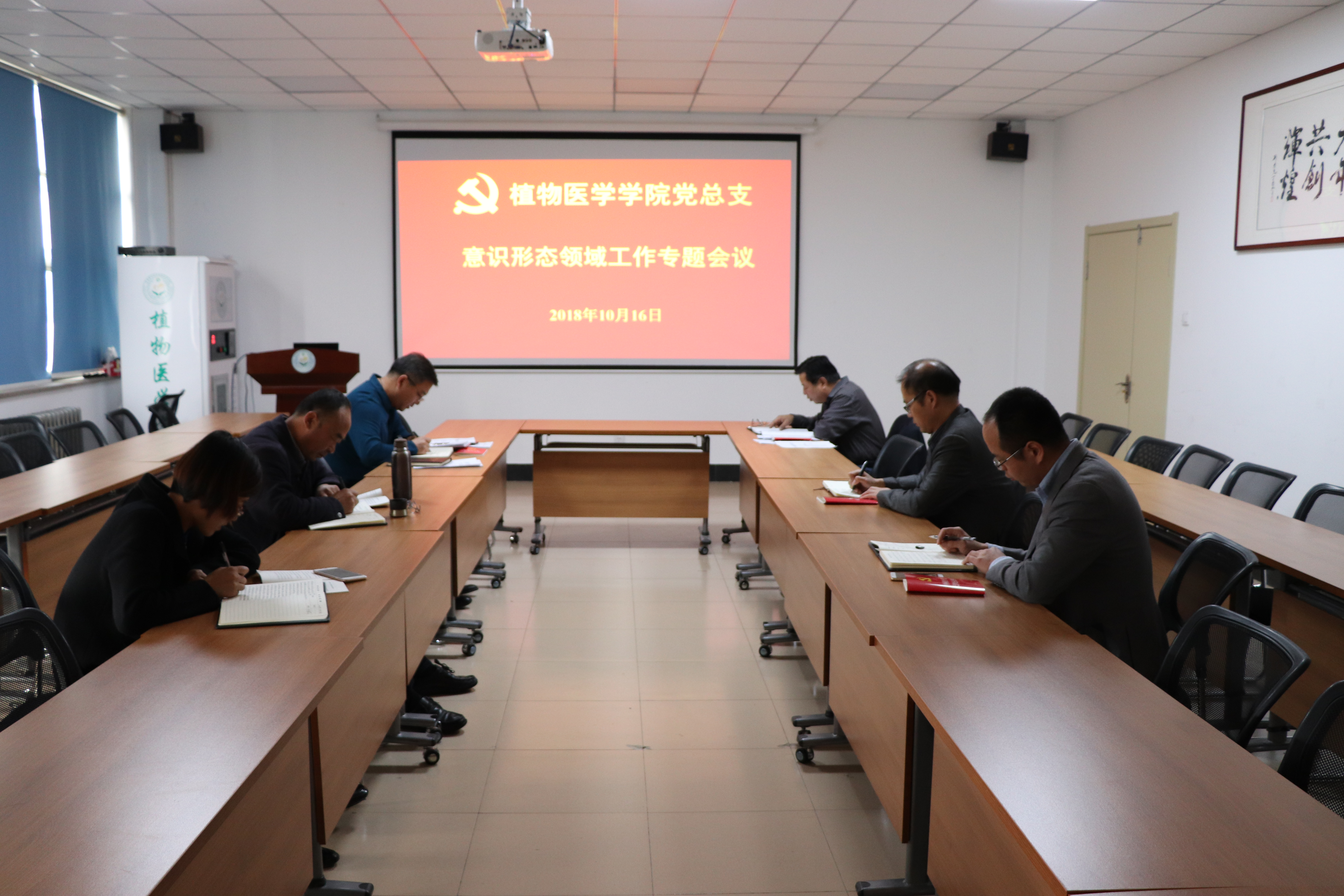 10月16日,植物医学学院党总支召开了意识形态领域工作专题会议,会议由党总支书记袁忠林主持,党总支全体成员参加。