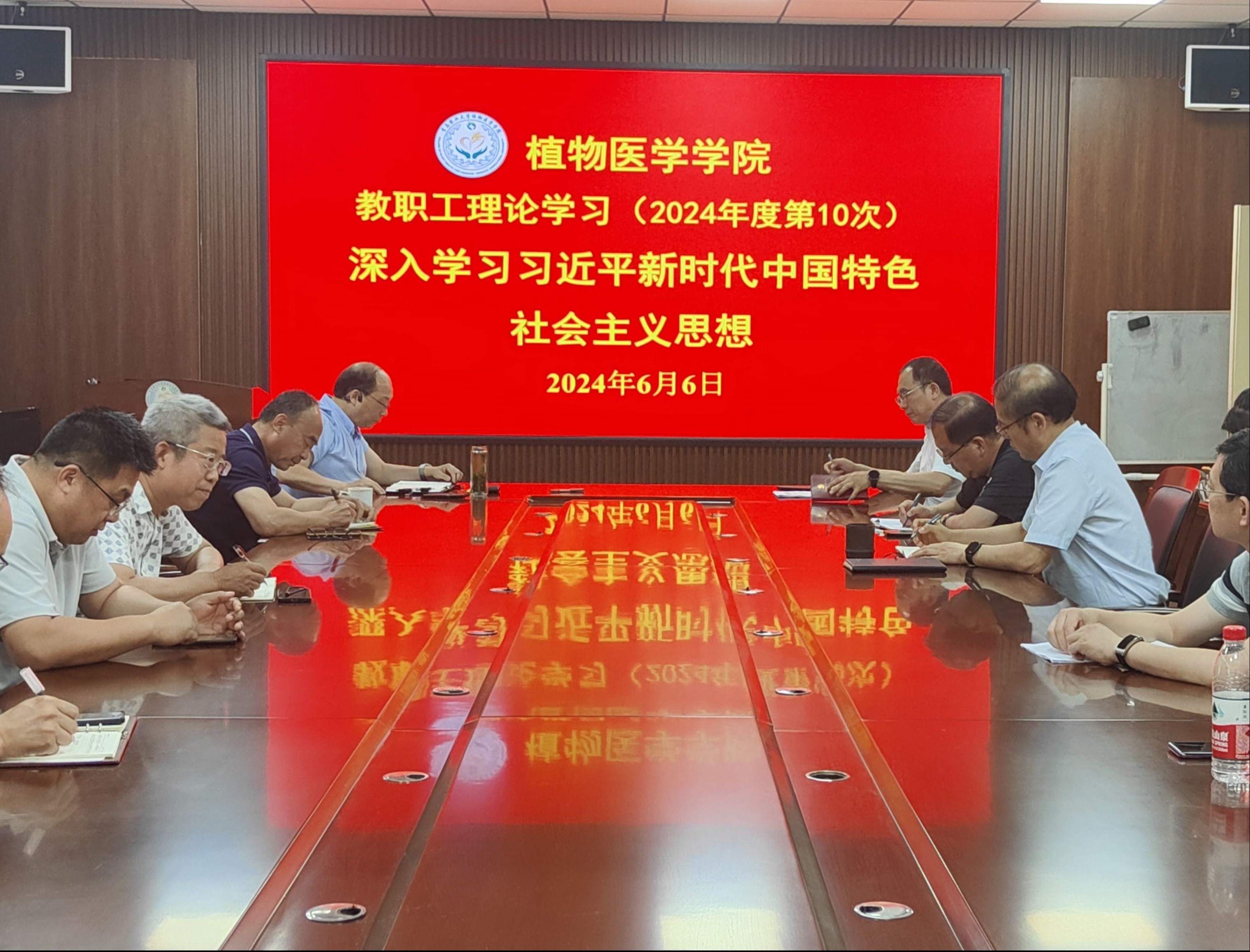 6月6日,青岛农业大学植物医学学院在学院会议室开展2024年度第10次教职工理论学习,深入学习习近平新时代中国特色社会主义思想。会议由学院党委书记韩强主持,全体教职工参加。