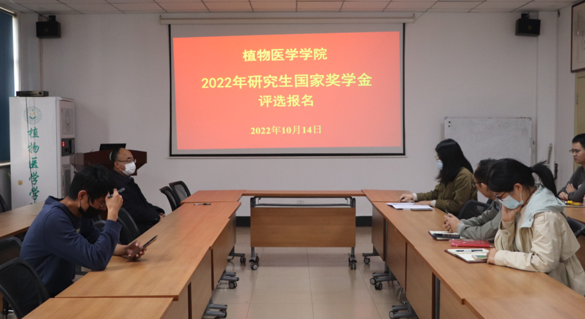 10月14日,植物医学学院在生物楼会议室组织开展2022年研究生国家奖学金评审答辩会。学院研究生国家奖学金评审委员会成员、国家奖学金候选人参加,会议由团委书记张琳主持。