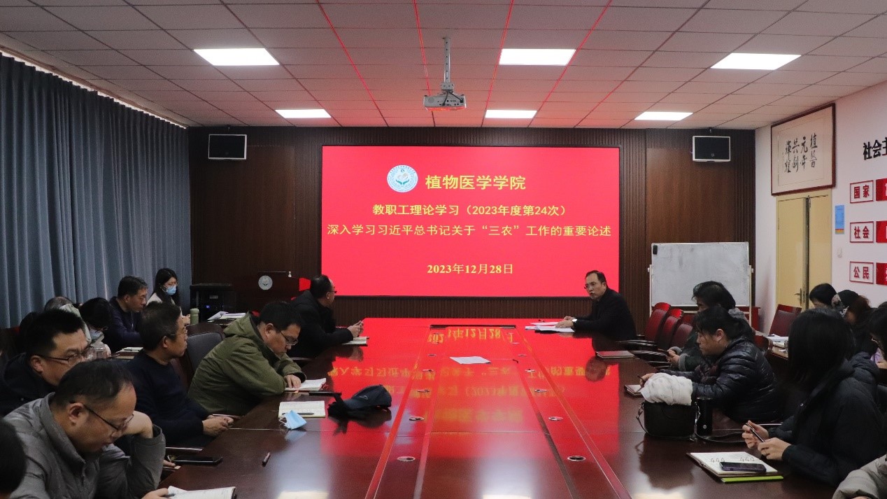 12月28日,青岛农业大学植物医学学院于学院会议室开展2023年度第24次教职工理论学习,会议由学院党委书记韩强主持,全体教职工参加。