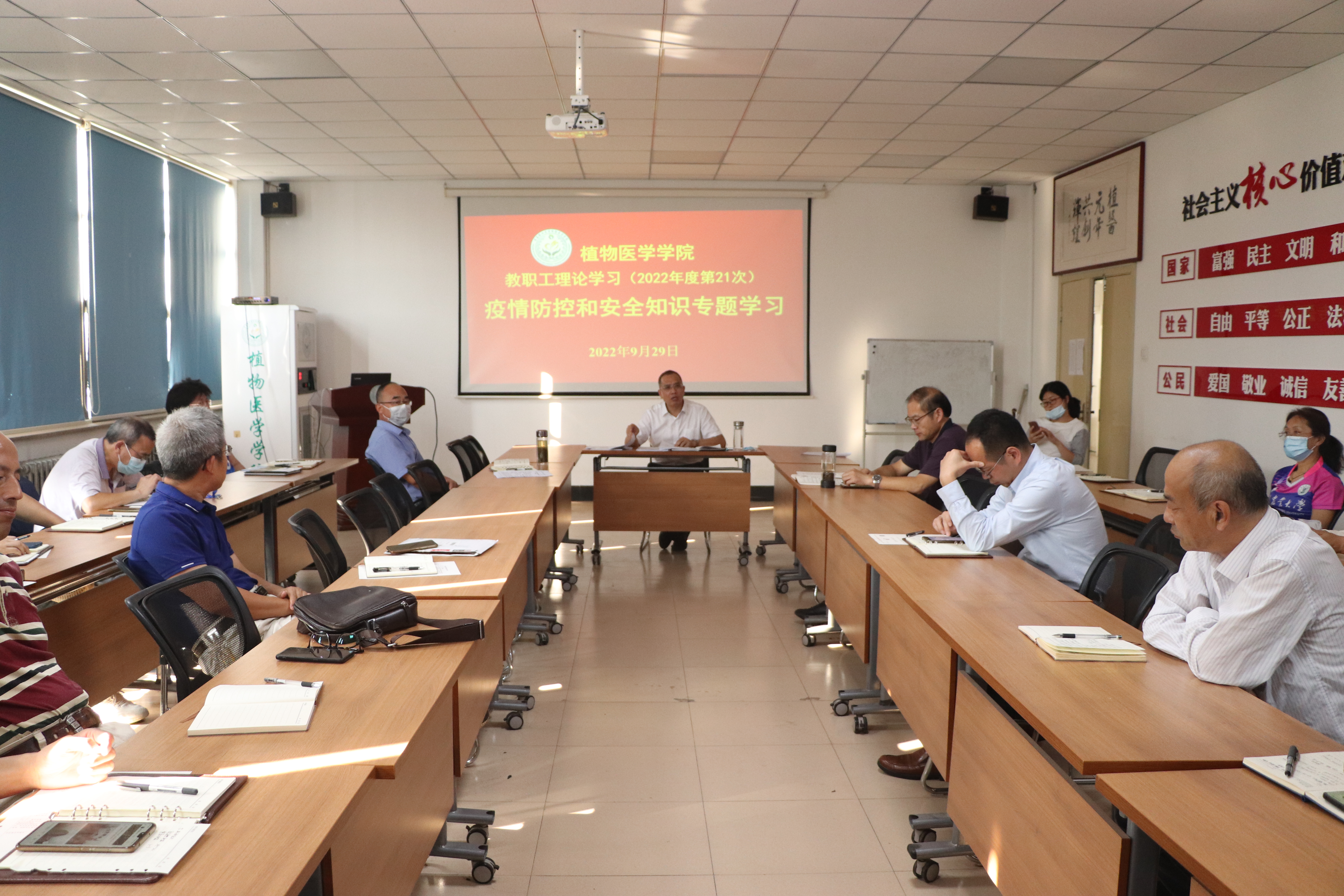 9月29日,青岛农业大学植物医学学院全体教职工在学院会议室开展2022年度第21次学习。会议由学院党总支书记韩强主持,全体教职工参加。