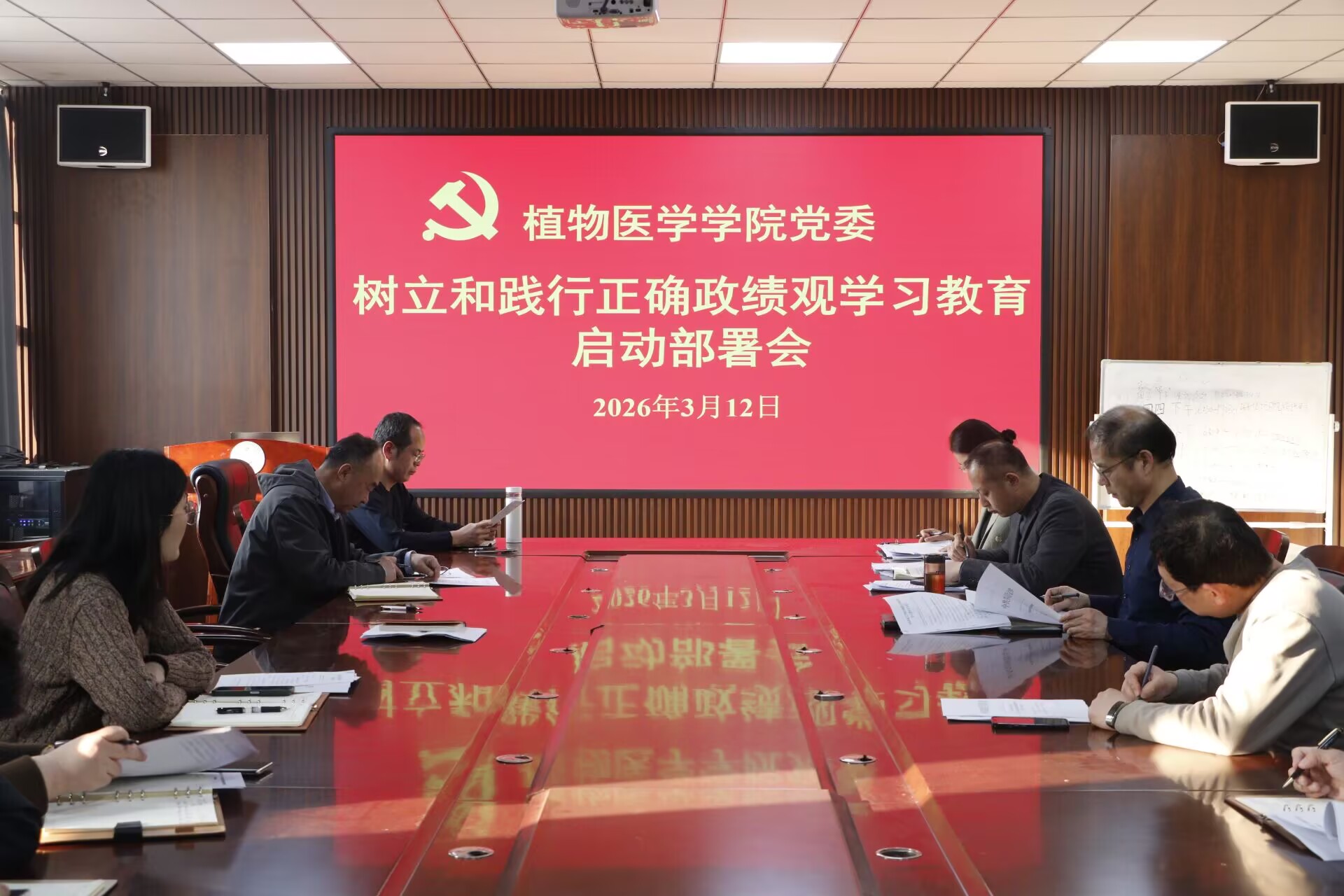 3月12日,植物医学学院党委召开树立和践行正确政绩观学习教育启动部署会。学院党委书记王丽静主持会议,学院党委班子成员、党支部书记参加。