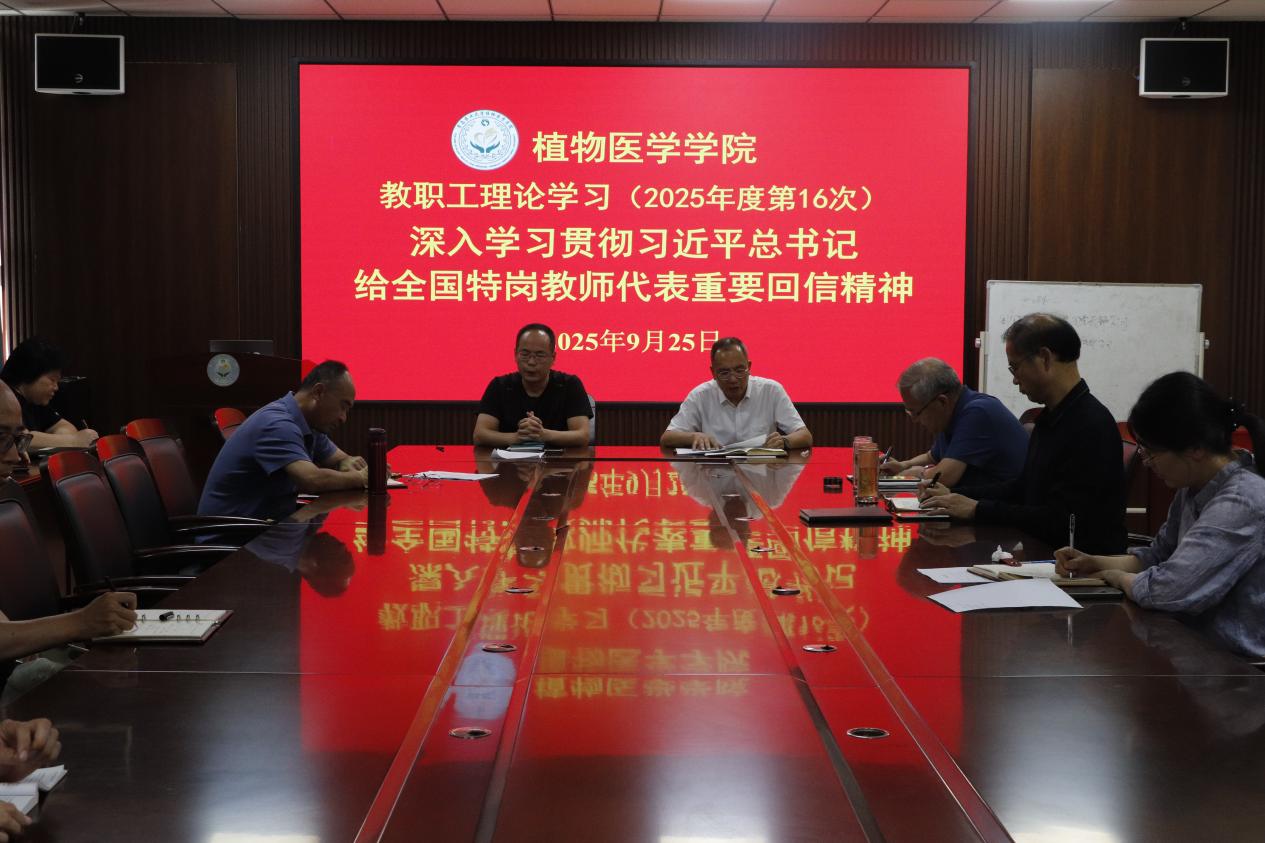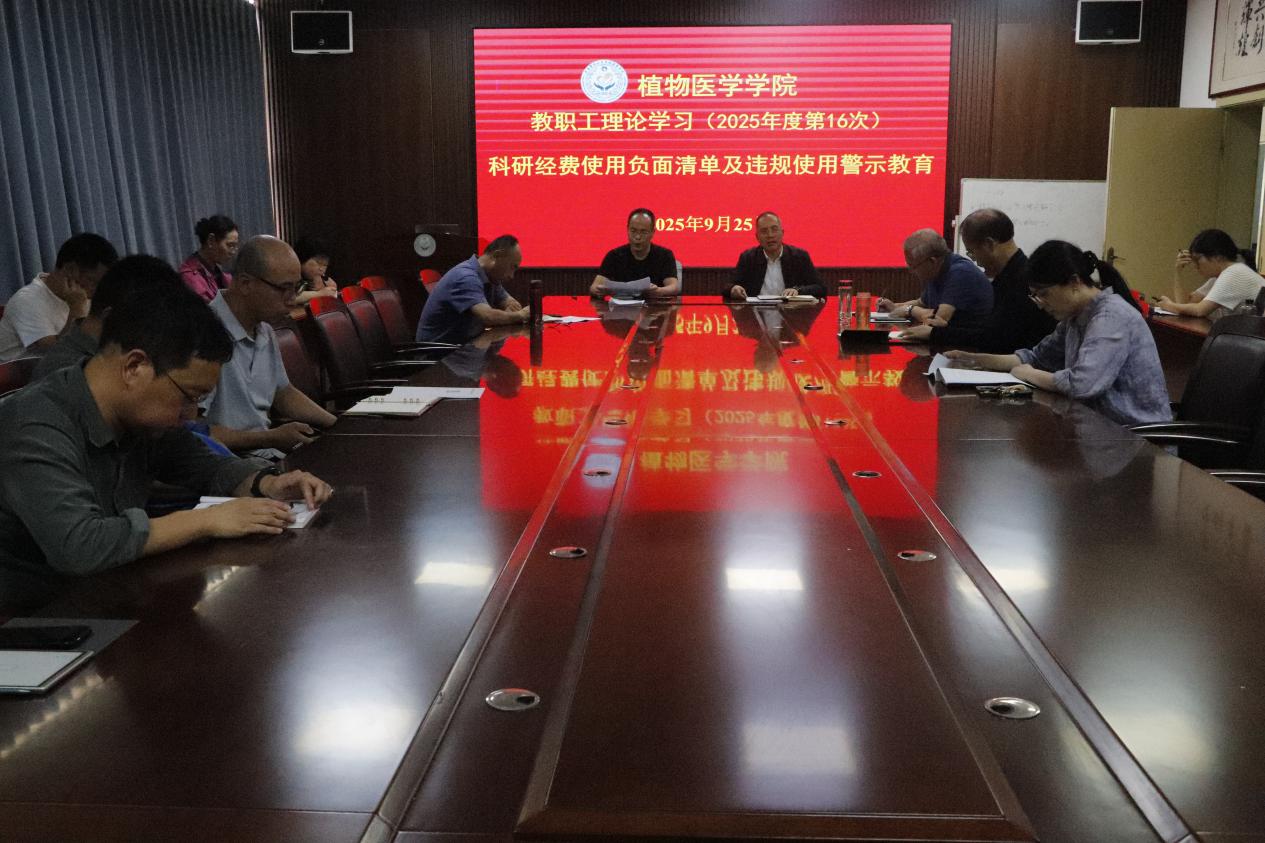 9月25日,青岛农业大学植物医学学院于学院会议室举行2025年度第16次教职工理论学习,深入学习习近平总书记给全国特岗教师代表重要回信精神,同时开展科研经费使用负面清单及违规使用警示教育,会议由学院党委书记韩强主持,全体教职工参加。