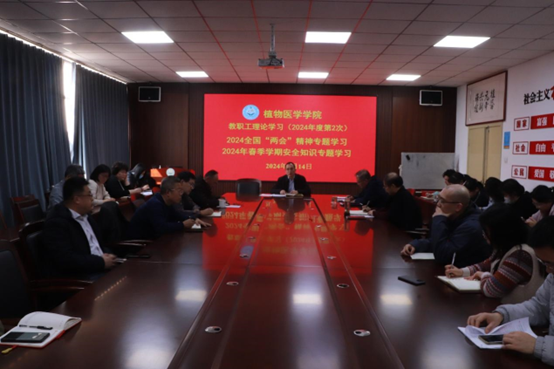 3月14日,青岛农业大学植物医学学院于学院会议室开展2024年度第2次教职工理论学习。会议由学院党委书记韩强主持,全体教职工参加。