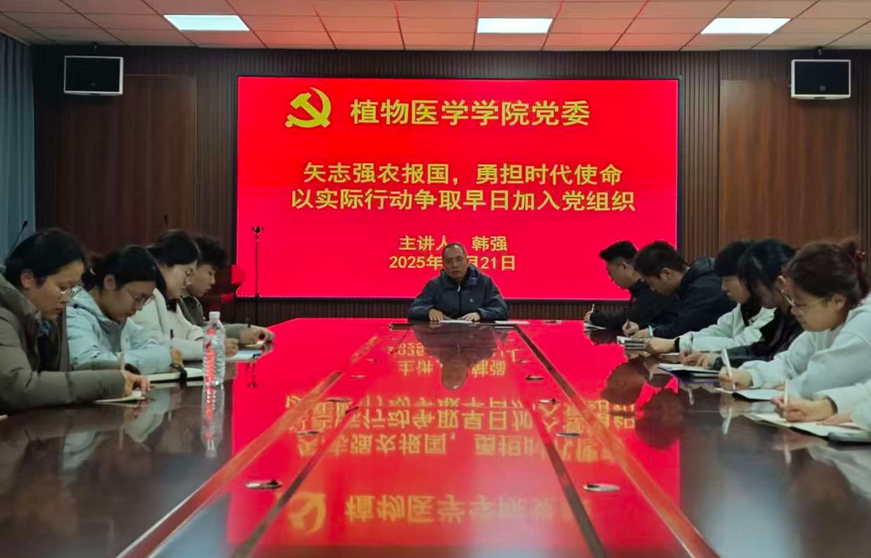 为进一步提升党员发展对象政治素养,深化党性认知,明确责任使命,10月21日,青岛农业大学植物医学学院于学院会议室举行2025年下半年党员发展对象培训班开班仪式,学院党委书记韩强讲授专题党课,会议由学院辅导员丁晨主持。