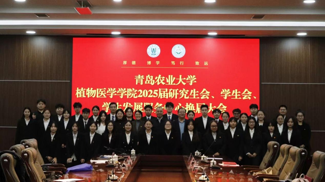 11月4日,青岛农业大学植物医学学院在学术会馆会议厅召开2025届研究生会、学生会、学生发展服务中心换届大会。学院党委副书记、副院长李军,辅导员房明、王玮琦,2024届、2025届研究生会、学生会、学生发展服务中心主席团成员及各部门负责人参加会议,会议由学院团委书记张琳主持。