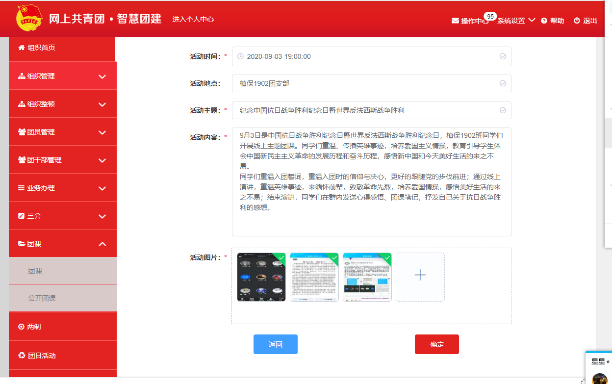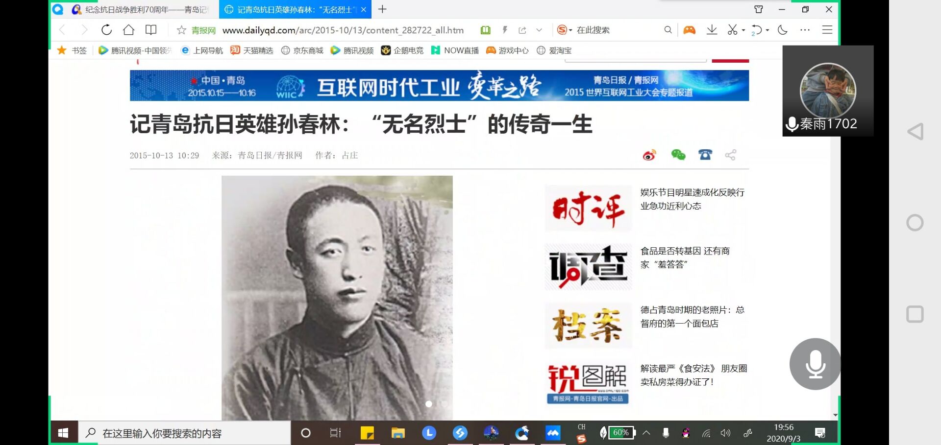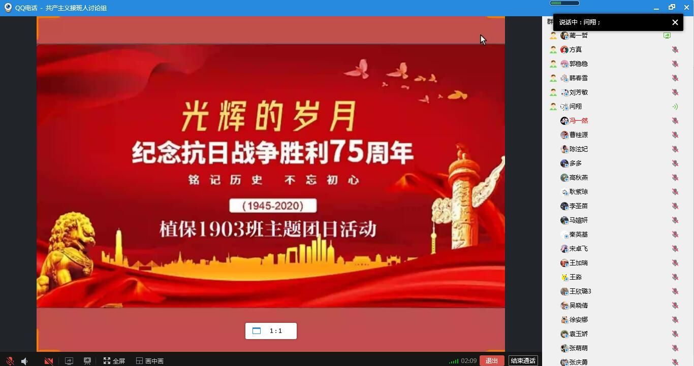 学院各团支部通过多种形式开展专项活动,各班团委积极组织线上及线下主题团课学习,帮助支部团员们了解抗日战争故事,铭记抗日战争精神。植物保护1902班、1903班、1905班等团支部组织开展网络正能量接力活动,通过青报网、网上共青团、青岛农业大学植物医学学院、团支部宣传号等新媒体平台,宣传抗战英雄事迹,鼓励新时代大学生学习并感悟抗战精神,1702班、1901班,1906班等班级以团支部为单位组织全体团员青年通过线上学习、讨论组等方式传递正能量,大家积极发言,在主题团课上分享自己的心得体会。