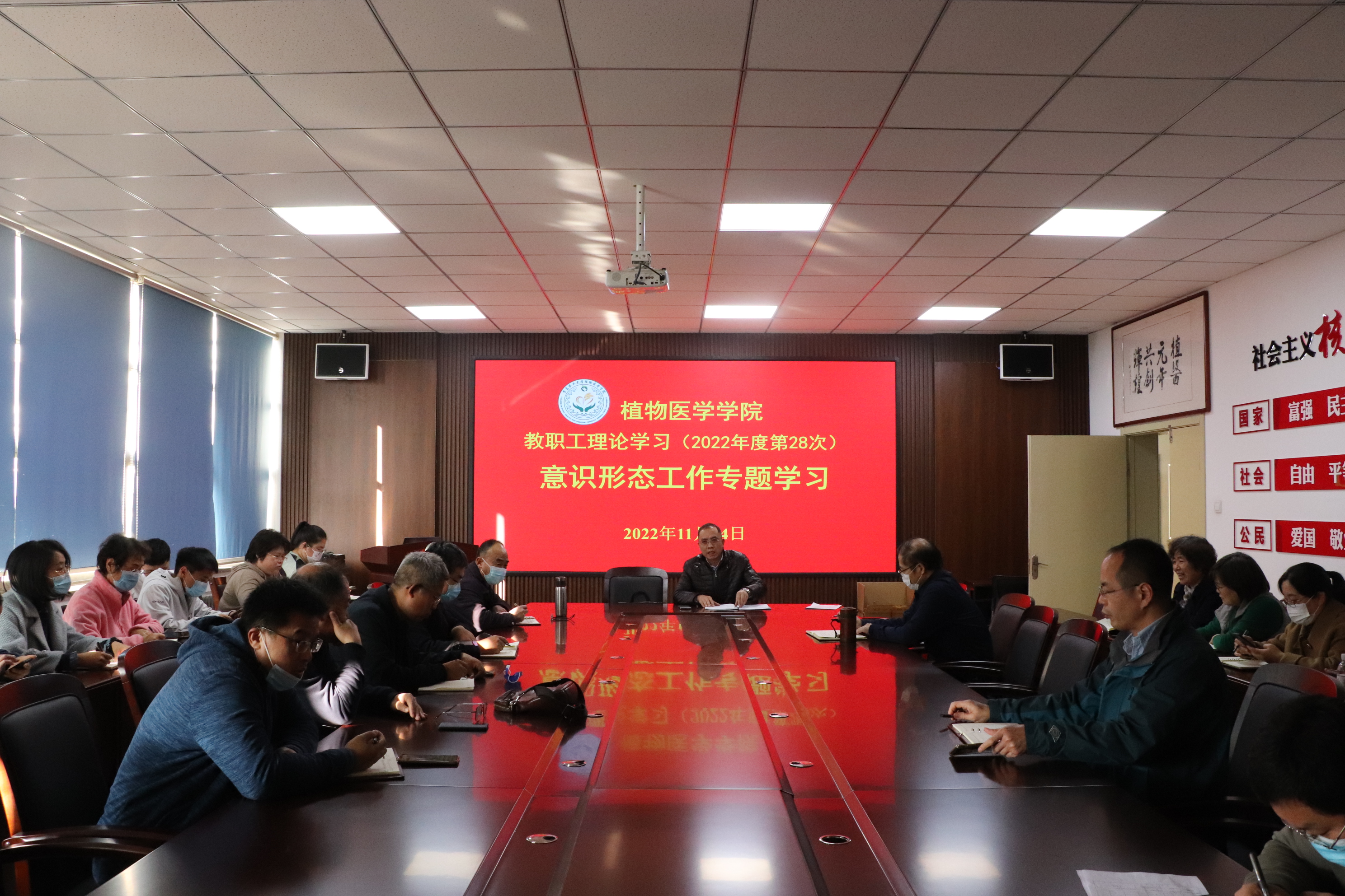 11月24日,青岛农业大学植物医学学院全体教职工在学院会议室开展2022年度第28次学习——意识形态工作专题学习暨疫情防控和安全知识专题学习。会议由学院党委书记韩强主持,全体教职工参加。