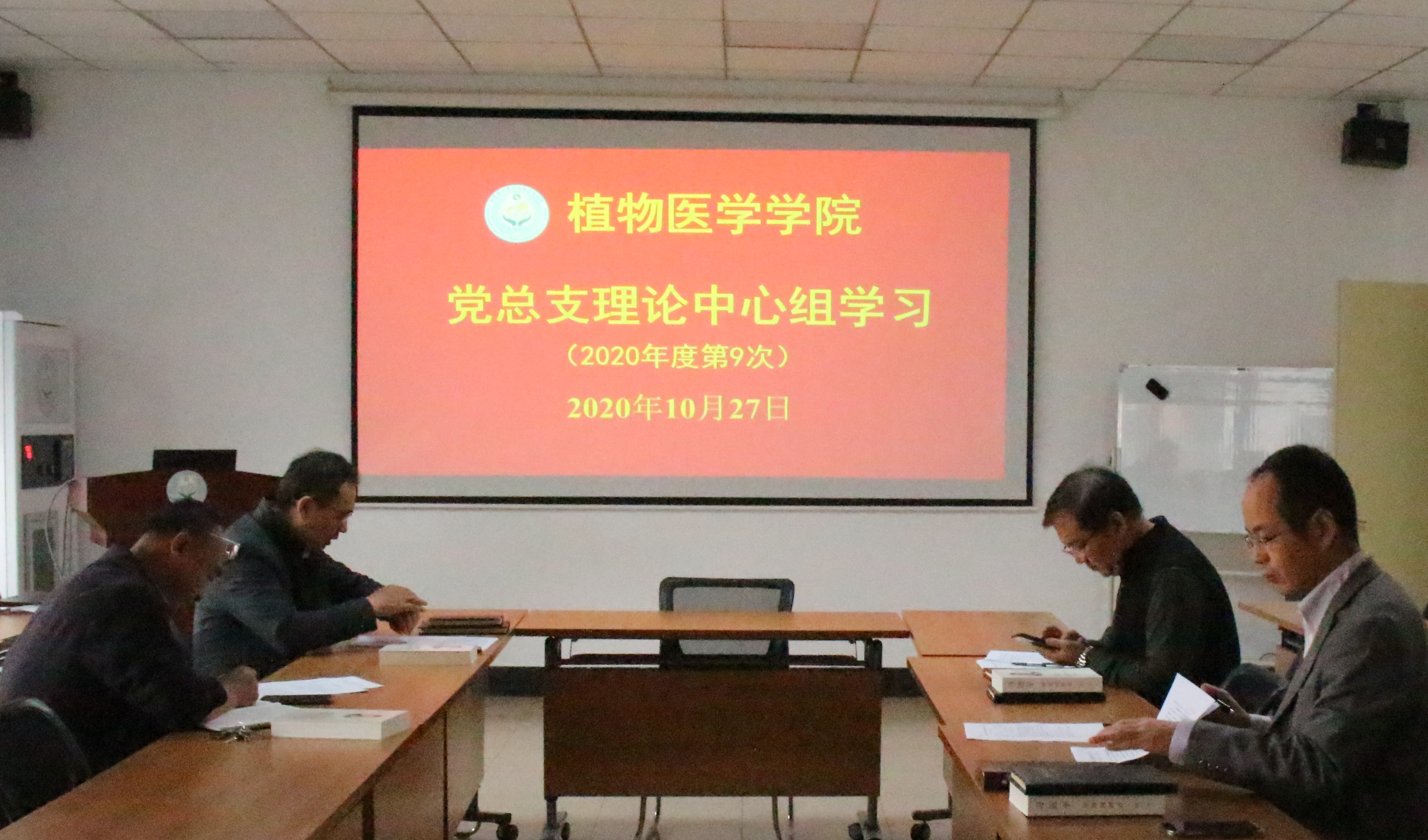10月27日上午,青岛农业大学植物医学学院党总支开展2020年度第九次理论学习中心组集中学习,本次学习的主题是“坚持以人民为中心”专题学习,理论学习中心组成员参加,会议由学院党总支书记韩强主持。