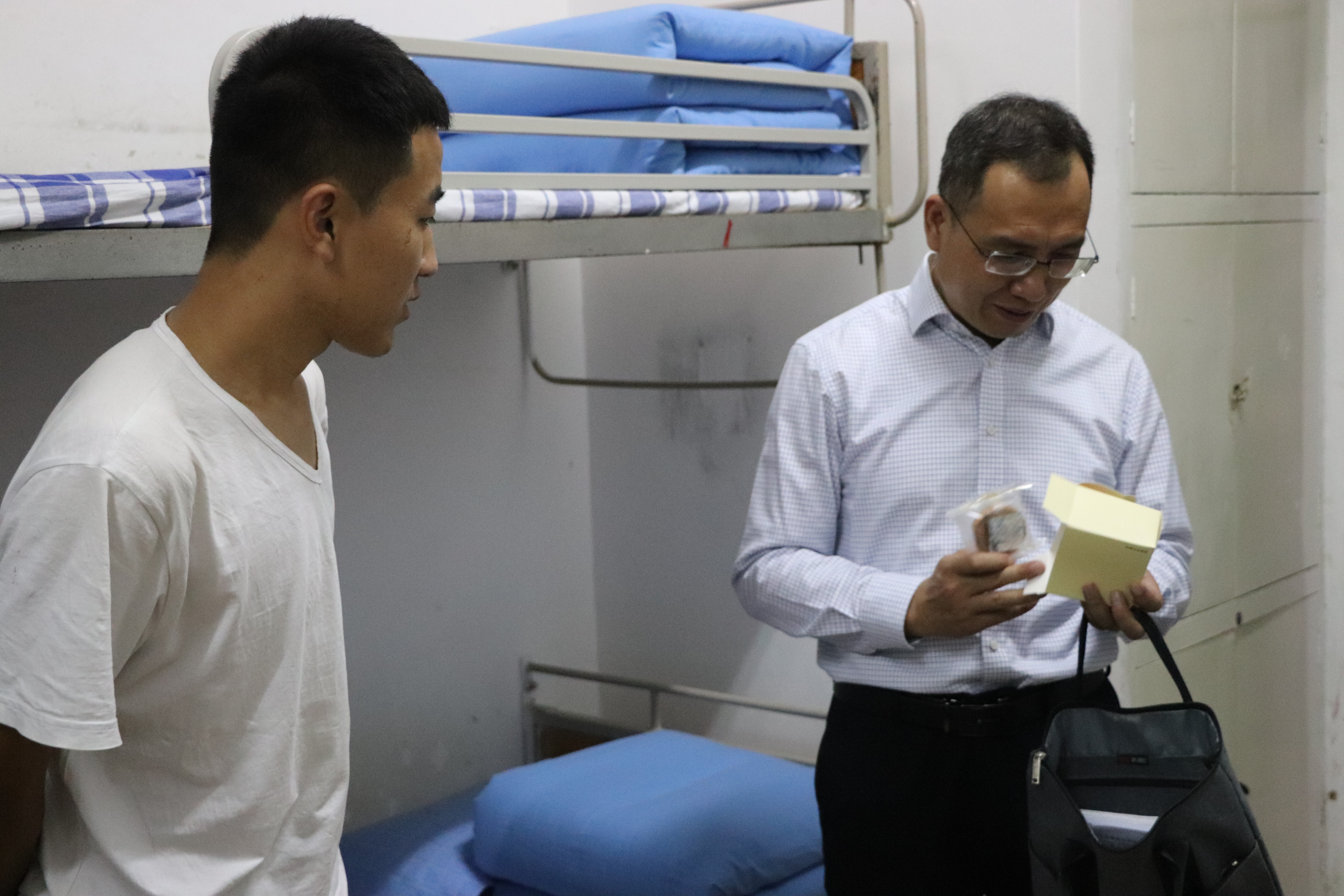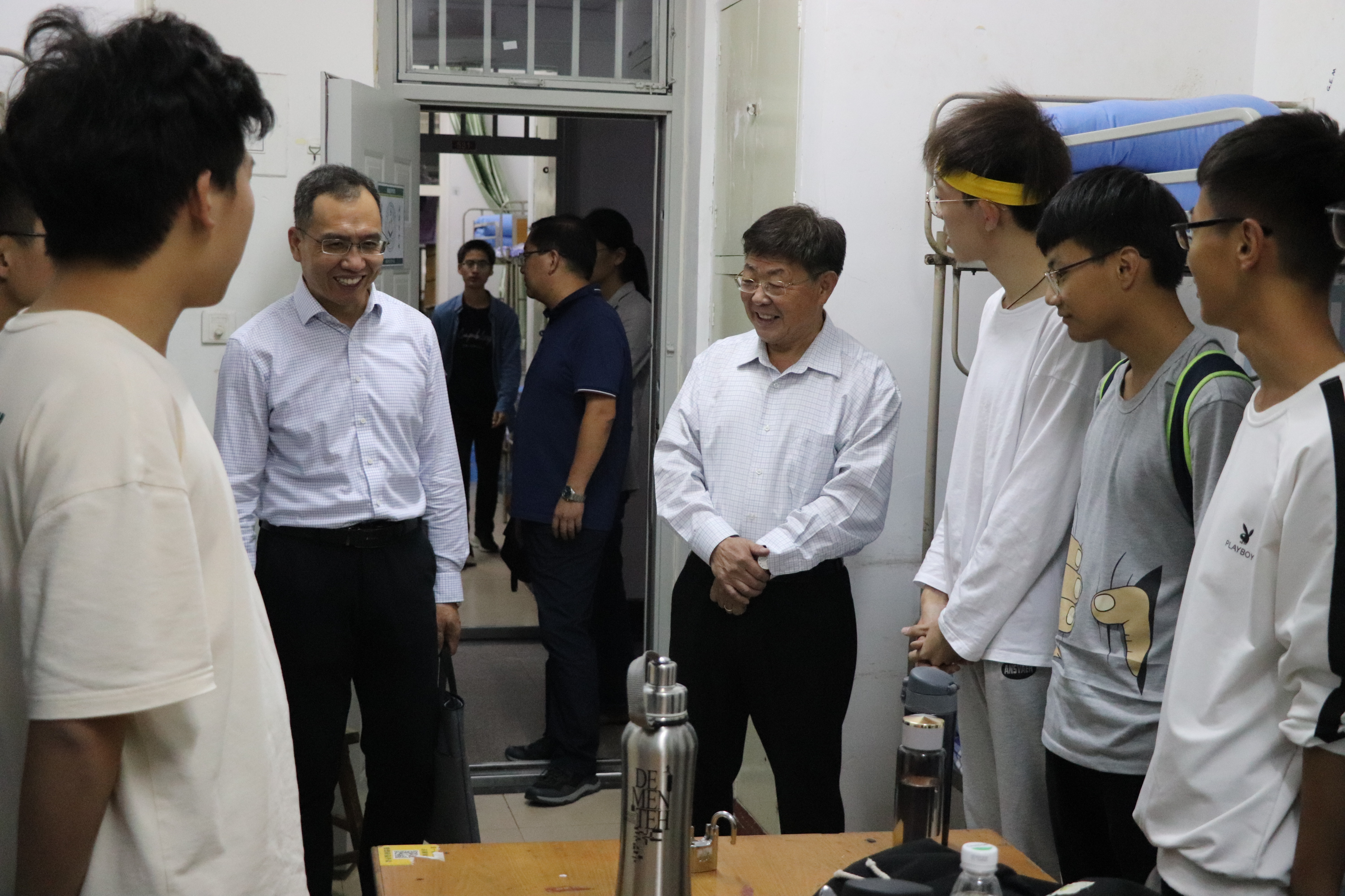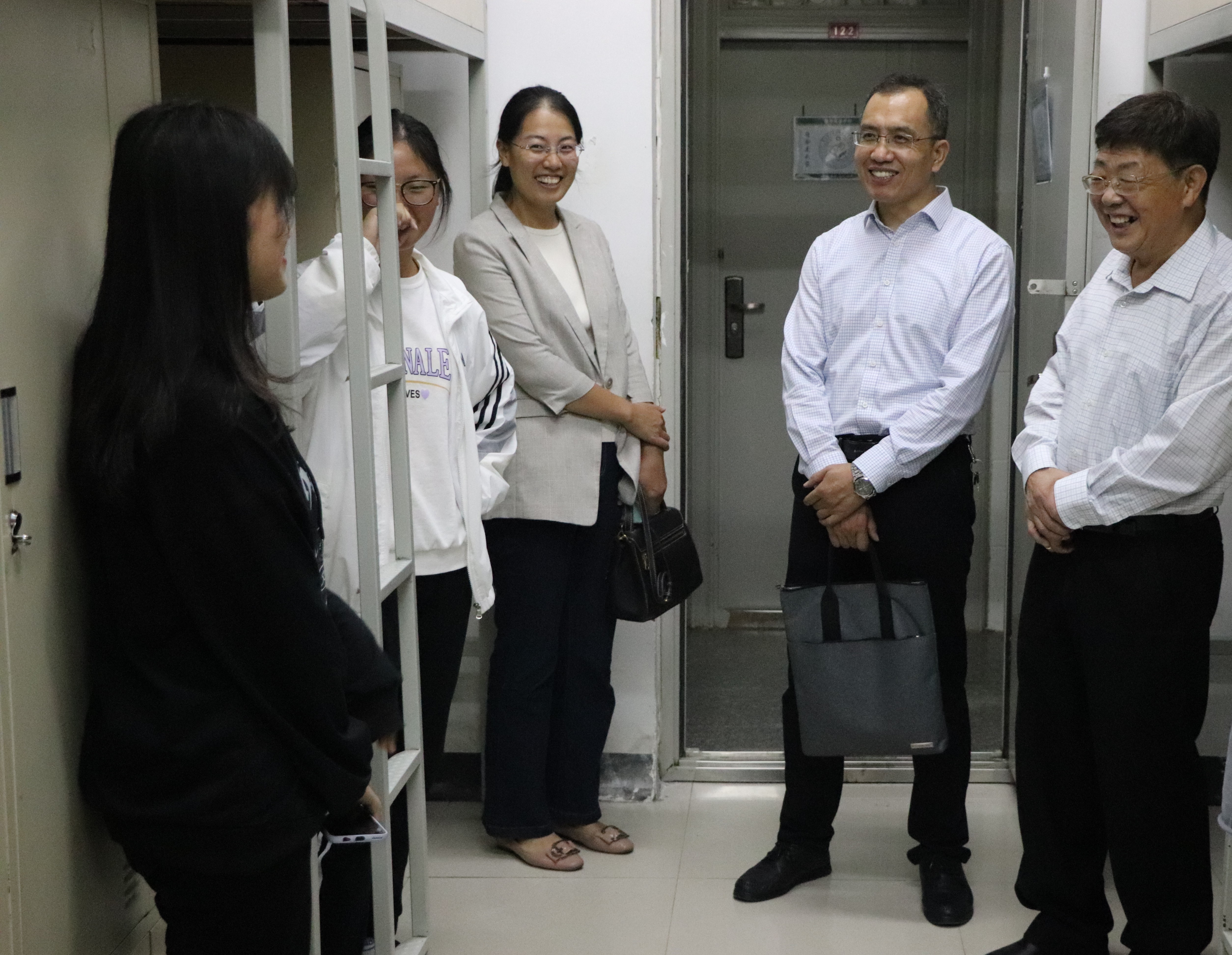月到中秋分外明,人到佳节别样亲。时逢国庆、中秋双节,为表达对新生的关切与爱护,9月30日晚,青岛农业大学植物医学学院院长刘同先,党总支书记韩强,党总支副书记、副院长李军,团委书记王丽静,辅导员丁晨、姚延珠前往宿舍区走访慰问在校学生。