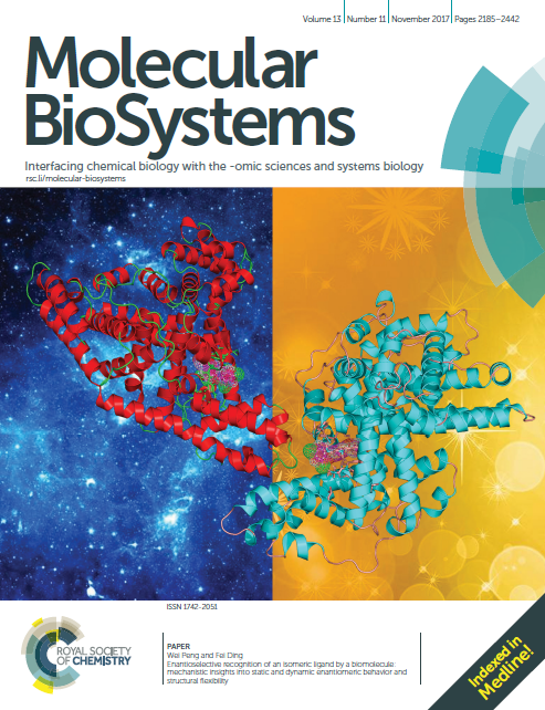 鉴于农药对生态环境的严重污染,特别是手性农药对环境中生物体的负面影响仍很不明确,这一结果不仅有助于揭示手性农药致毒效应的复杂机制,而且为全面评价其它手性有机污染物的对映体毒性提供了有益线索。因此,该研究工作受期刊主编的推荐,10月24日以“封面文章”的形式发表于英国皇家化学会出版的期刊《Molecular BioSystems》(2017, 13, 2226-2234)。