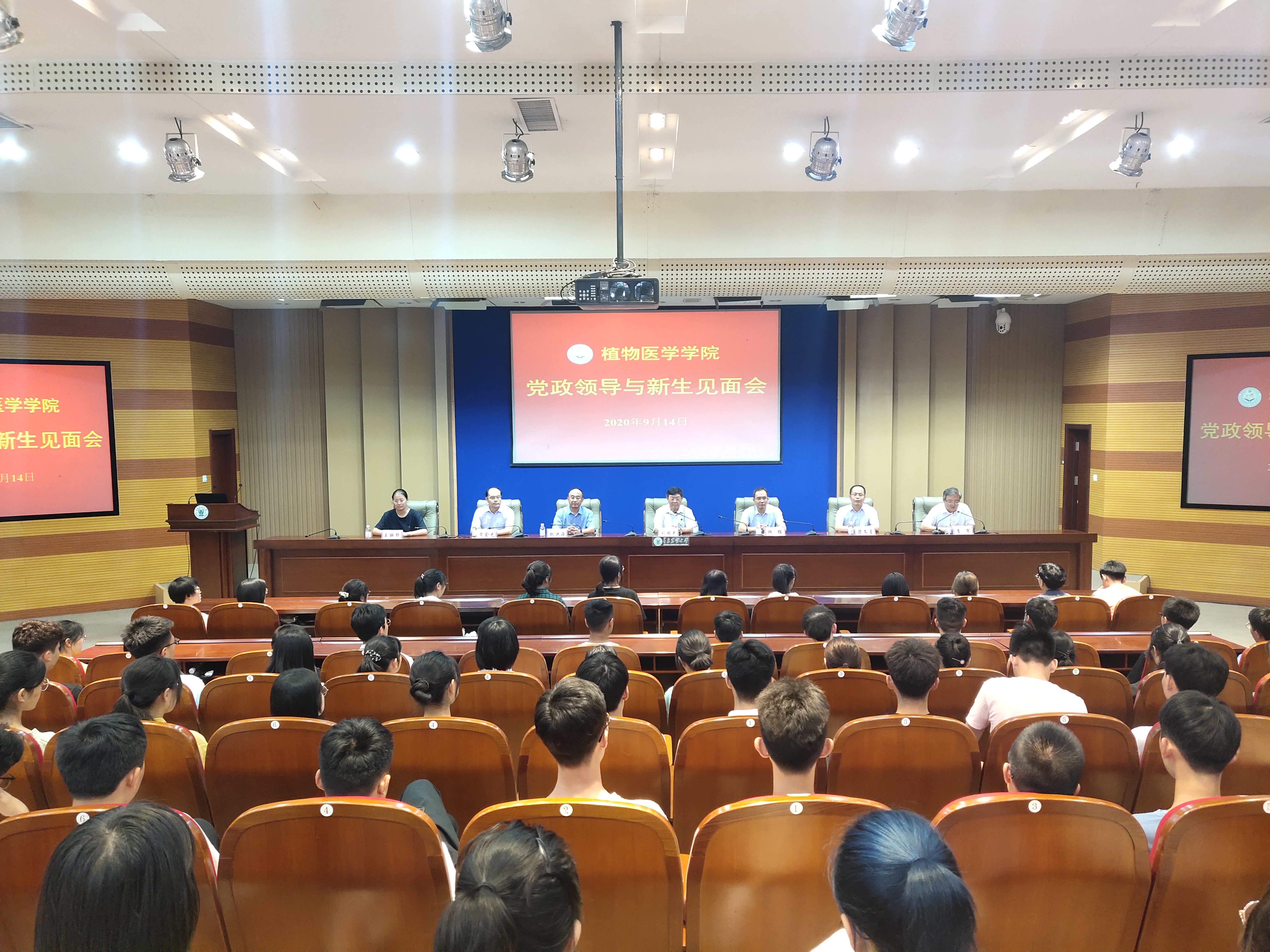 9月14日,植物医学学院在学术会馆第一报告厅举行2020级新生见面会,植物医学学院党政领导和辅导员、班主任老师出席会议,学院2020级全体新生参加。