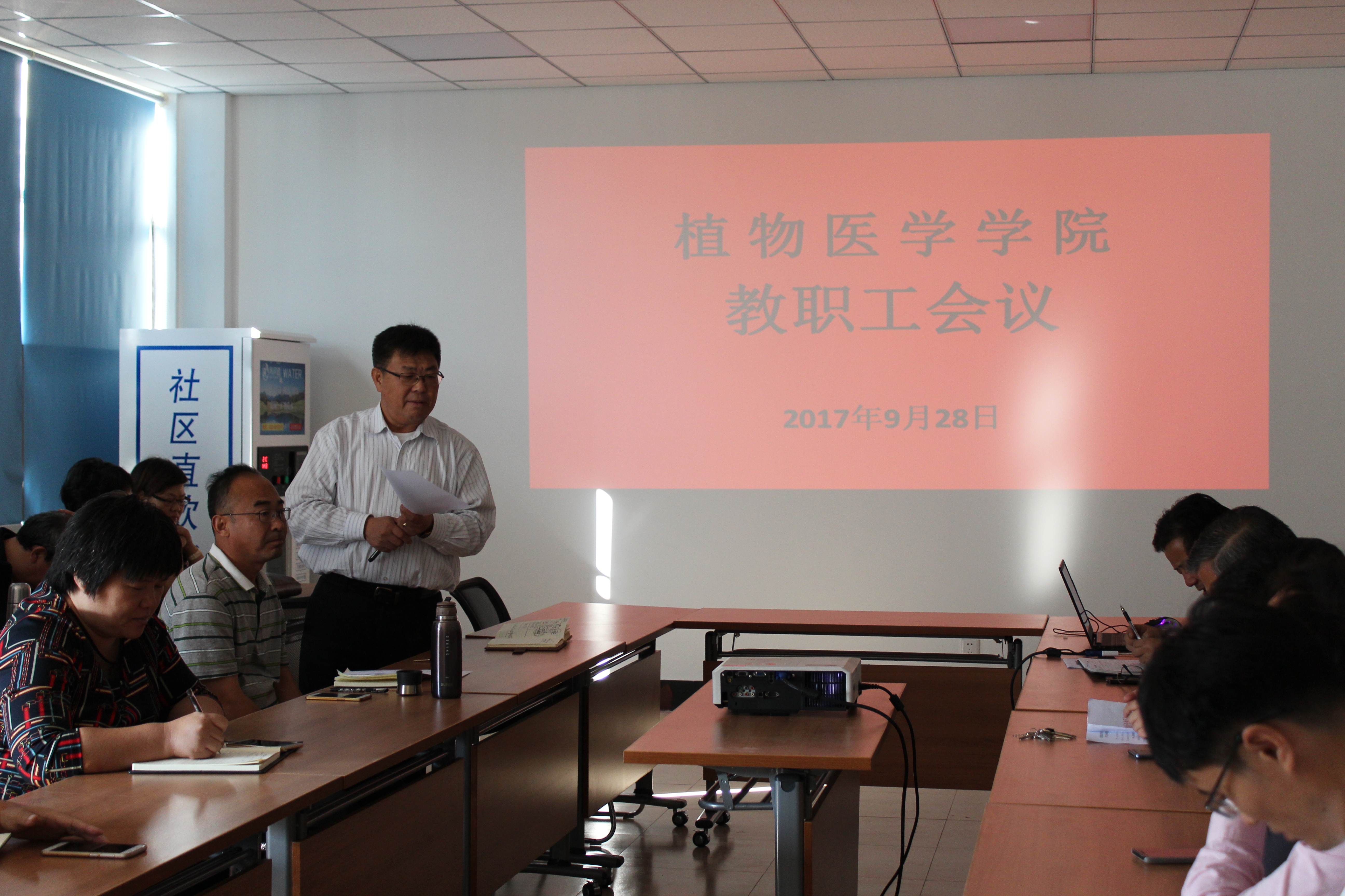 9月28日,植物医学学院在N406召开了教职工会议,本次会议由院长刘同先主持,学院全体教职工参加。