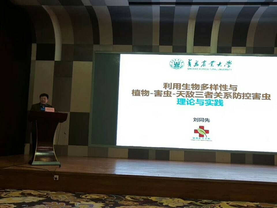 论坛只有两位专家的主题报告,青岛农业大植物医学学院院长刘同先教授的报告题目是”利用生物多样性植物-害虫-天敌三者关系控制害虫”;青岛农业大学特聘教授、中国农科院植物保护研究所万方浩研究员报告题目是“入侵生物-永远的国际问题”。