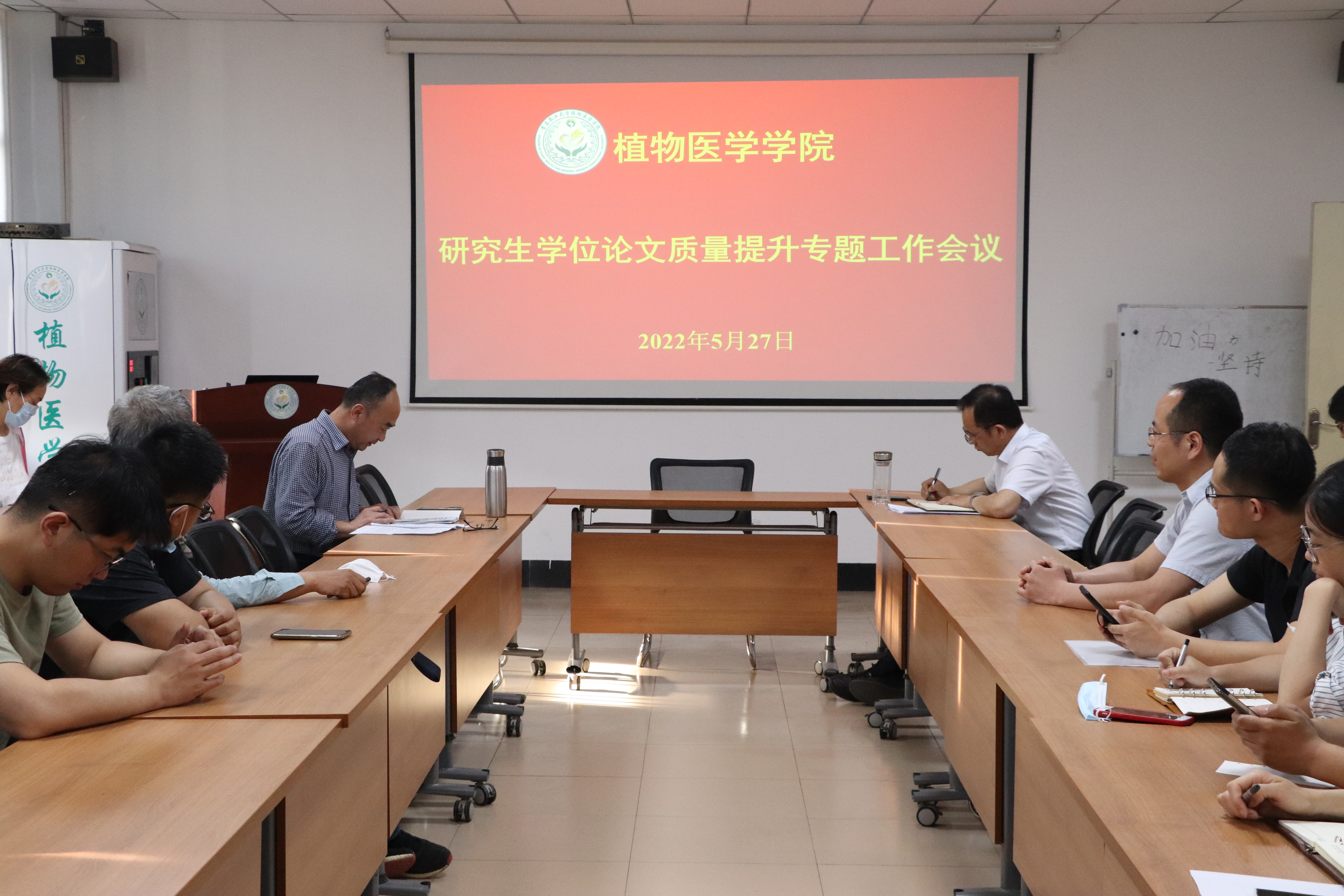 5月27日下午,青岛农业大学植物医学学院于学院会议室召开研究生学位论文质量提升专题工作会议,学院党总支书记韩强、副院长赵洪海及全体研究生导师参加,会议由韩强主持。