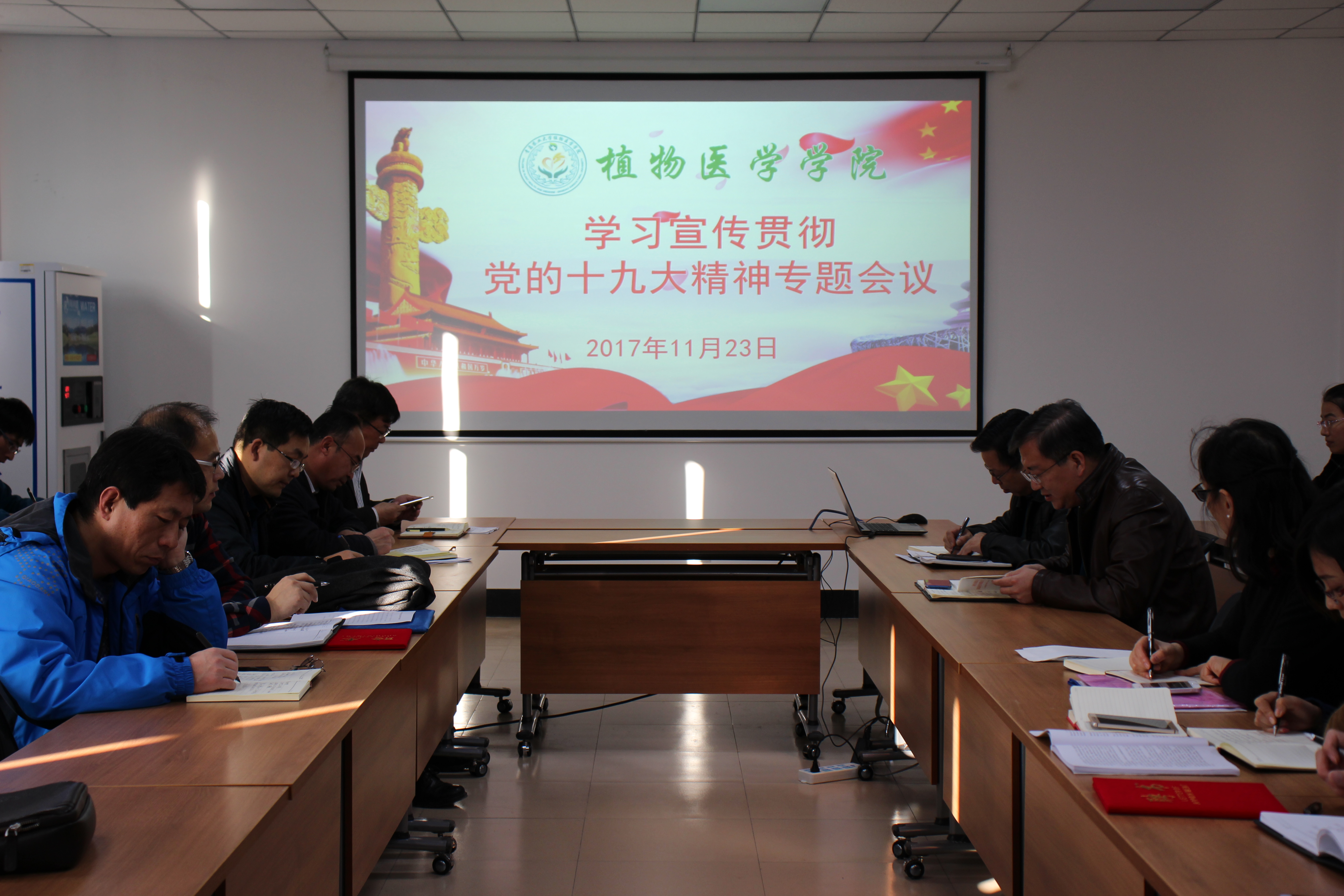为深入学习宣传贯彻党的十九大精神,11月23日,植物医学学院在生物楼N406区开展学习宣传贯彻党的十九大精神专题会议,全体党员教职工参加,本次学习由党总支书记袁忠林主持。