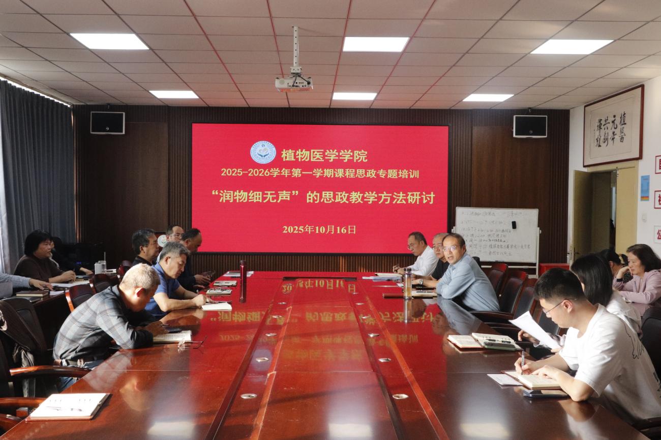 10月16日,青岛农业大学植物医学学院在学院会议室召开2025-2026学年第一学期首场课程思政专题培训会议,会议由学院副院长黄金光主持,昆虫系系主任孙丽娟主讲“润物细无声”的思政教学方法,全体教职工参加研讨。