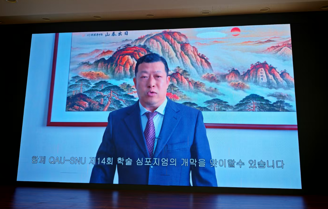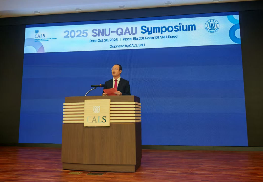 青岛农业大学植物医学学院院长梁文星教授进行现场致辞,他首先对首尔大学的周密安排与盛情邀请表示衷心感谢。他亲切回顾了两校植物保护团队,特别是围绕植物医学这一前沿领域,在联合研究、技术攻关与师生互访中取得的扎实进展与丰硕成果。梁院长指出,这些立足于学院层面的具体合作,为两校深厚的友谊注入了坚实的专业力量。同时,梁院长坚信,以此次研讨会为新的起点,两校在农业科学与生物技术领域的智慧碰撞,必将为共同应对全球农业挑战开辟新路径。最后,他再次表达了对研讨会顺利举办的诚挚祝愿。