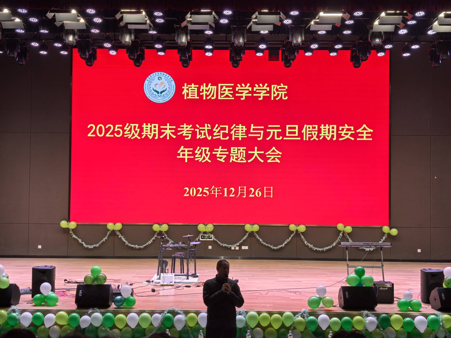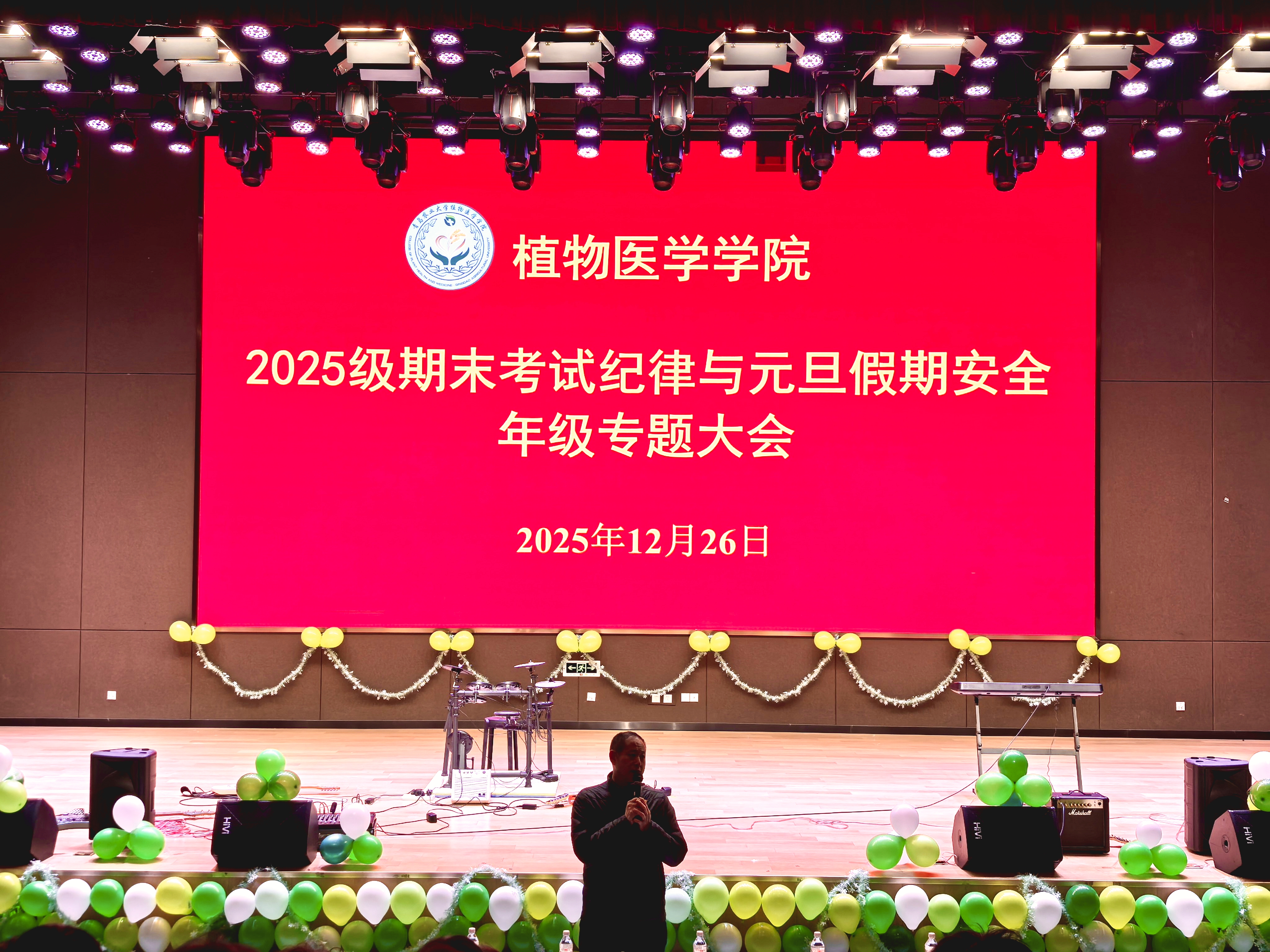 12月26日,青岛农业大学植物医学学院在平度校区大学生活动中心报告厅召开2025级期末考试纪律与元旦假期安全年级专题大会。