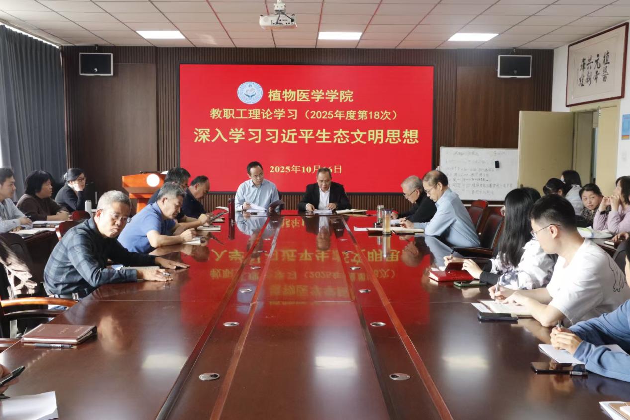 10月16日,青岛农业大学植物医学学院于学院会议室开展“深入学习习近平生态文明思想”教职工理论学习。会议由学院党委书记韩强主持,全体教职工参加。