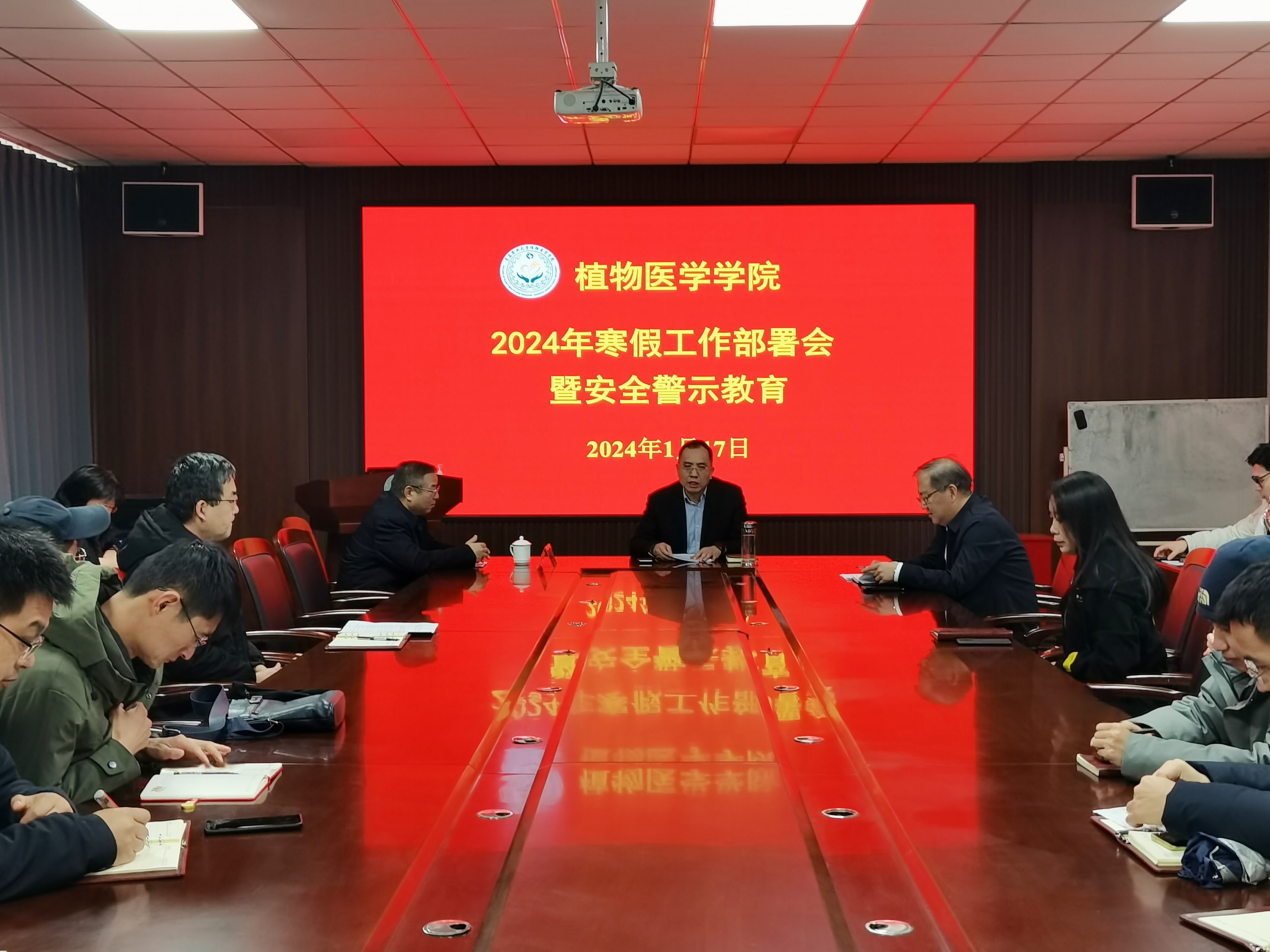 1月17日,青岛农业大学植物医学学院于学院会议室召开寒假工作部署会暨安全警示教育会,会议由学院党委书记韩强主持,学院全体教职工参加。