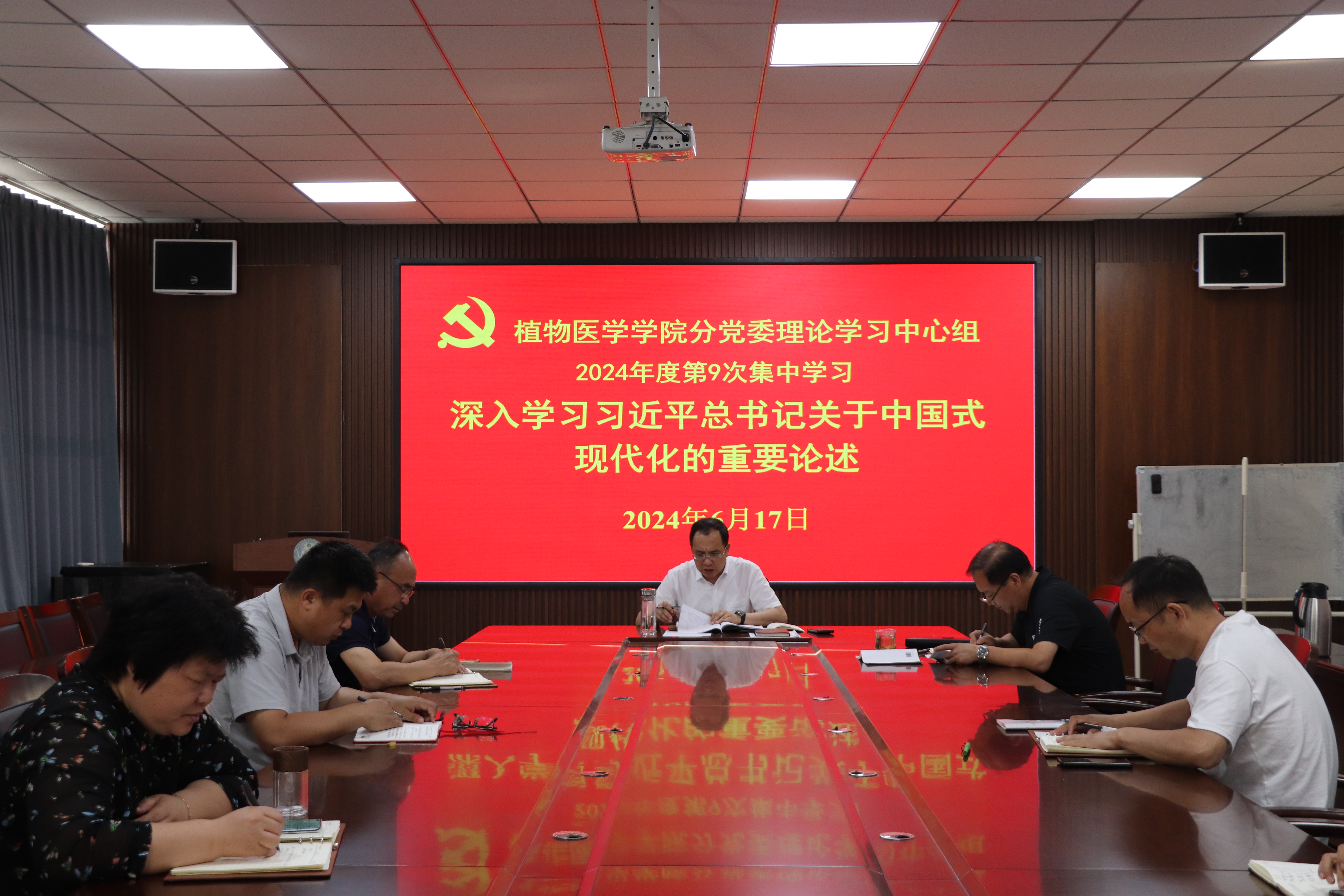 6月17日,青岛农业大学植物医学学院在学院会议室开展2024年度第9次党委理论学习中心组集中学习,深入学习习近平总书记关于中国式现代化的重要论述,会议由学院党委书记韩强主持,学院党委理论学习中心组全体成员参加。