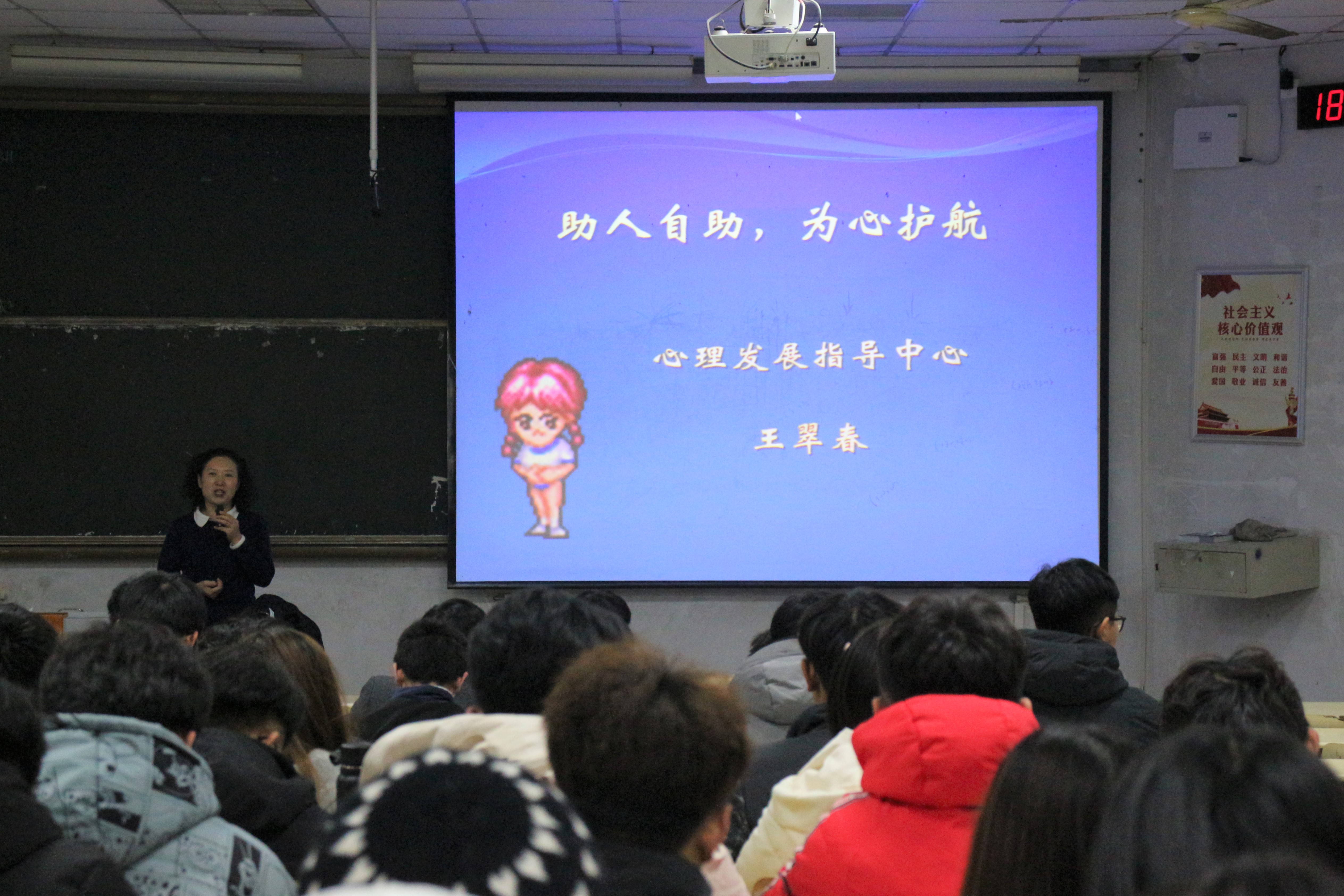 为进一步加强新生心理健康建设、明确心理骨干职责,12月2日,青岛农业大学心理发展指导中心于教学区B区召开主题为“助人自助,为心护航”心理健康教育骨干培训会,会议由心理发展中心指导老师王翠春主讲,学院新生心理健康工作学生骨干参加。