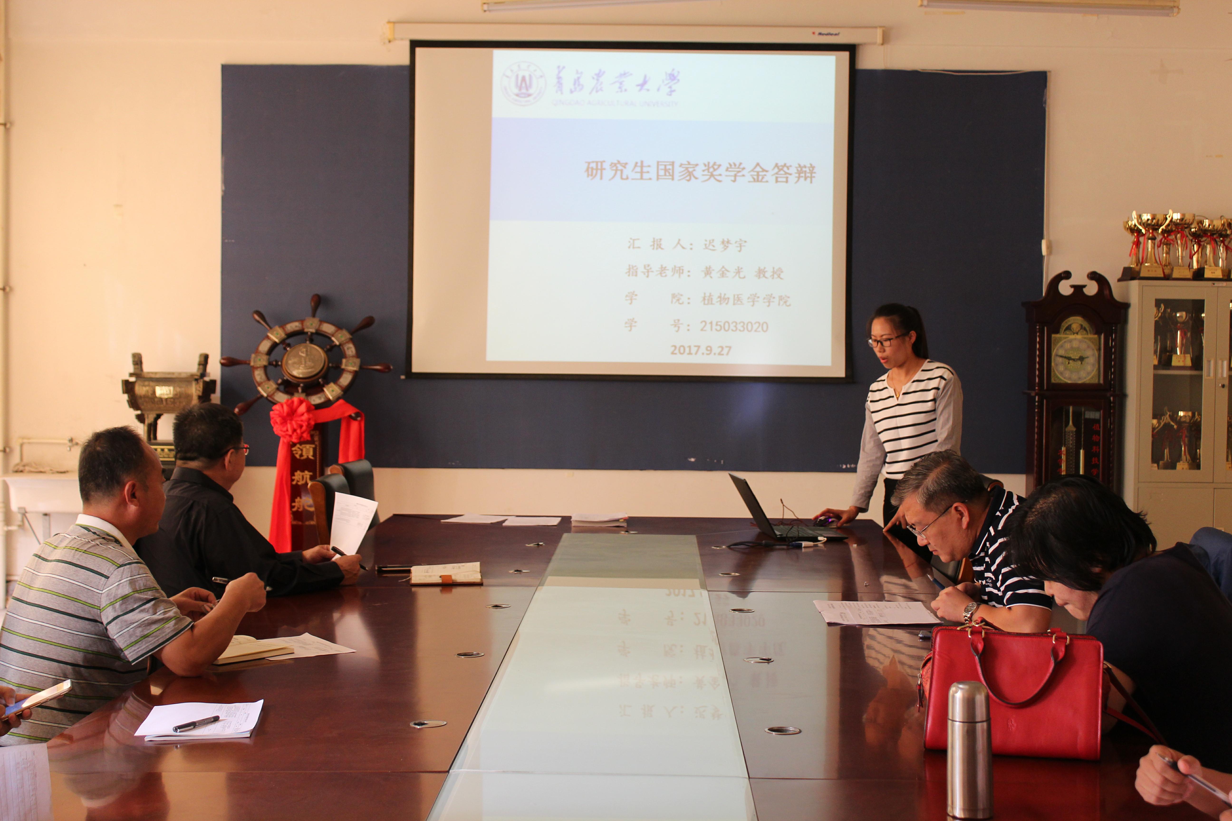 9月27日下午,植物医学学院2017年研究生国家奖学金评审答辩会在生物楼N206举行。会议由学院党总支书记、副院长李军主持。学院研究生国家奖学金评审领导小组和评审委员会成员出席会议,部分导师代表、研究生代表参加。
