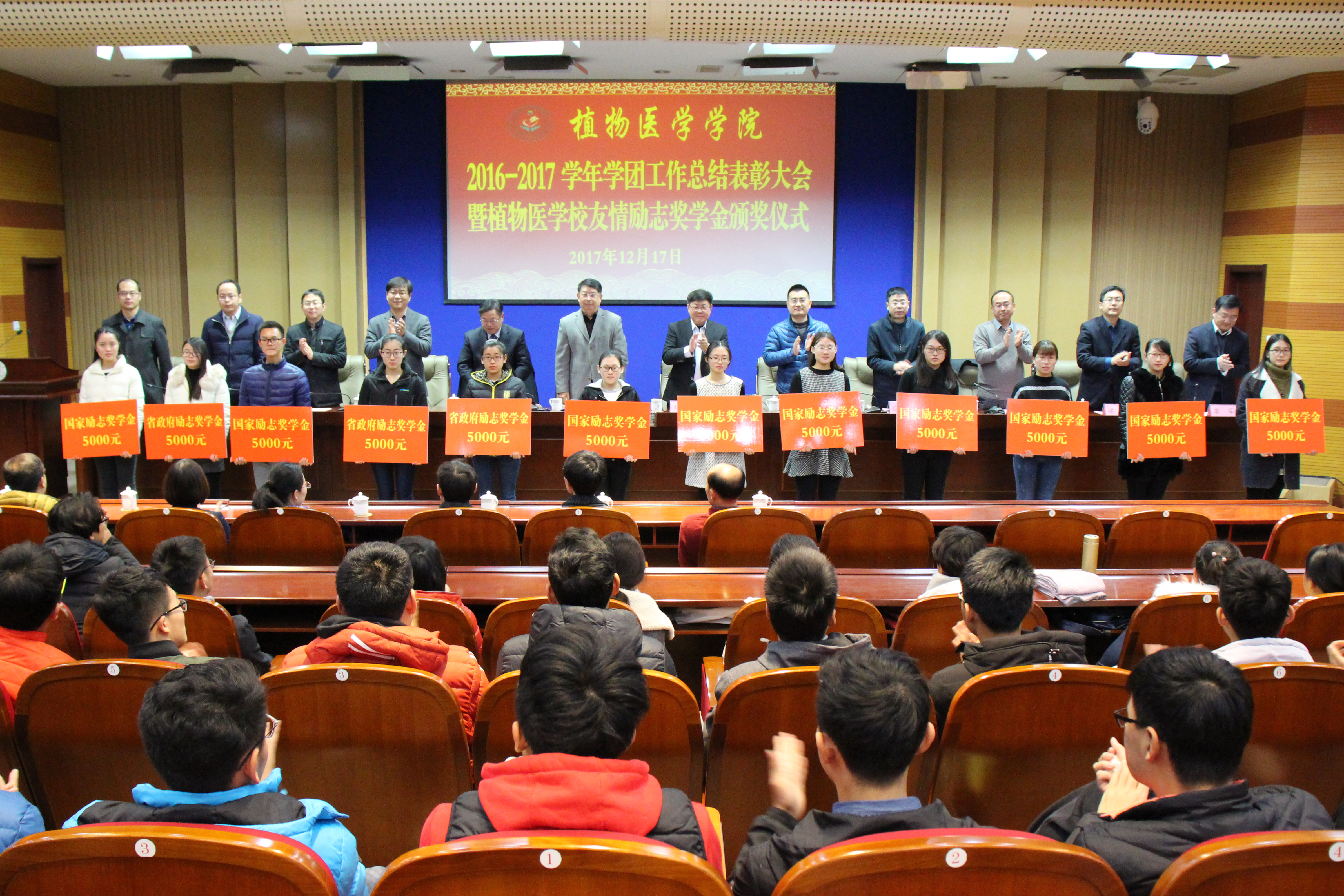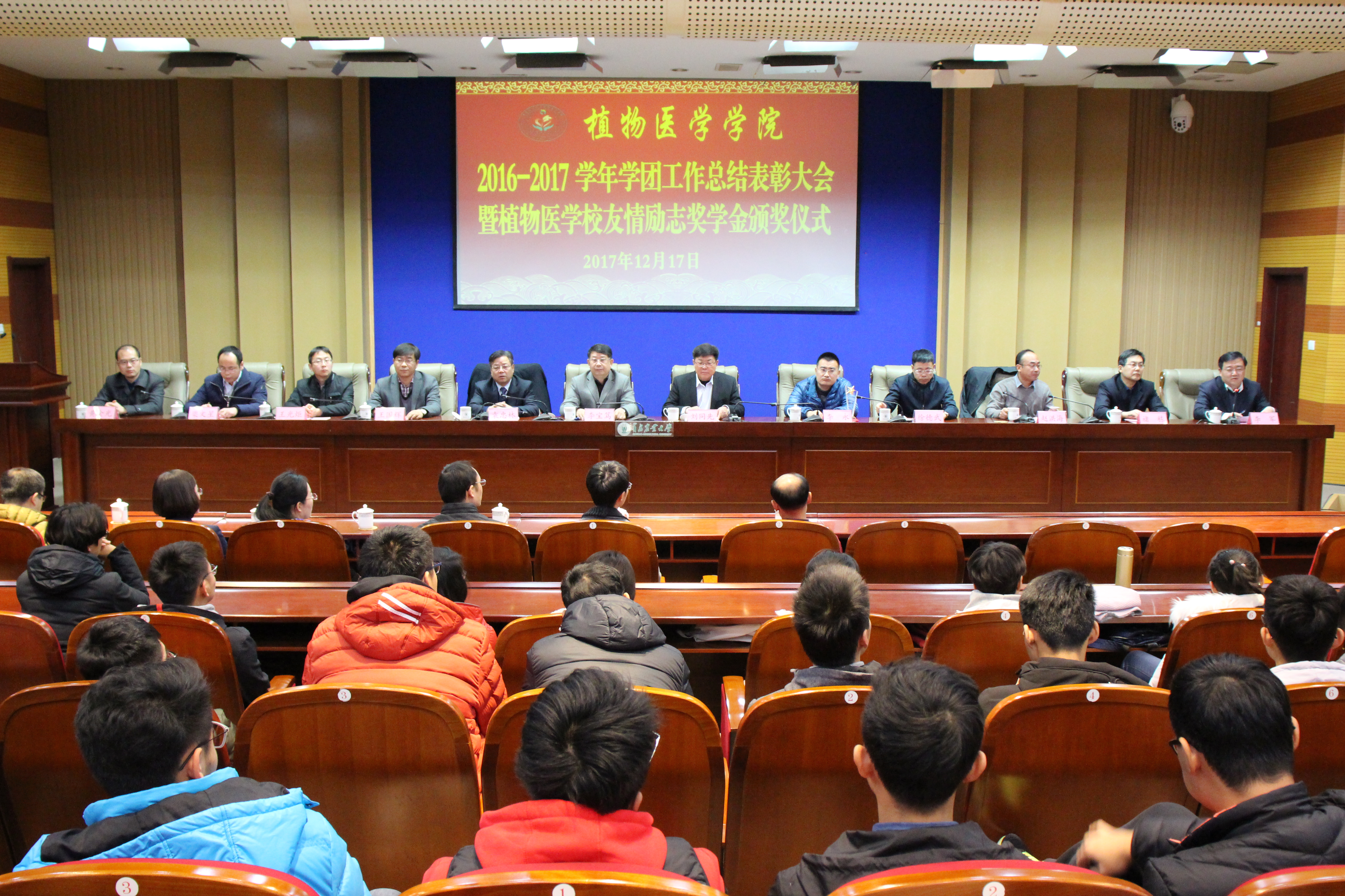 12月17日,植物医学学院2016-2017学年年团工作总结表彰大会暨植物医学校友情励志奖学金颁奖仪式于学术会馆顺利召开。青岛农业大学党委书记李宝笃,校党委学生工作部(处)副部(处)长王国辉,校党委研究生工作部(处)副部(处)长徐德武,校团委副书记王光炬,植保2004级校友山东康乔生物科技有限公司营销总监李永及植物医学学院领导班子全体成员出席表彰大会。大会由学院党总支副书记、副院长李军主持。