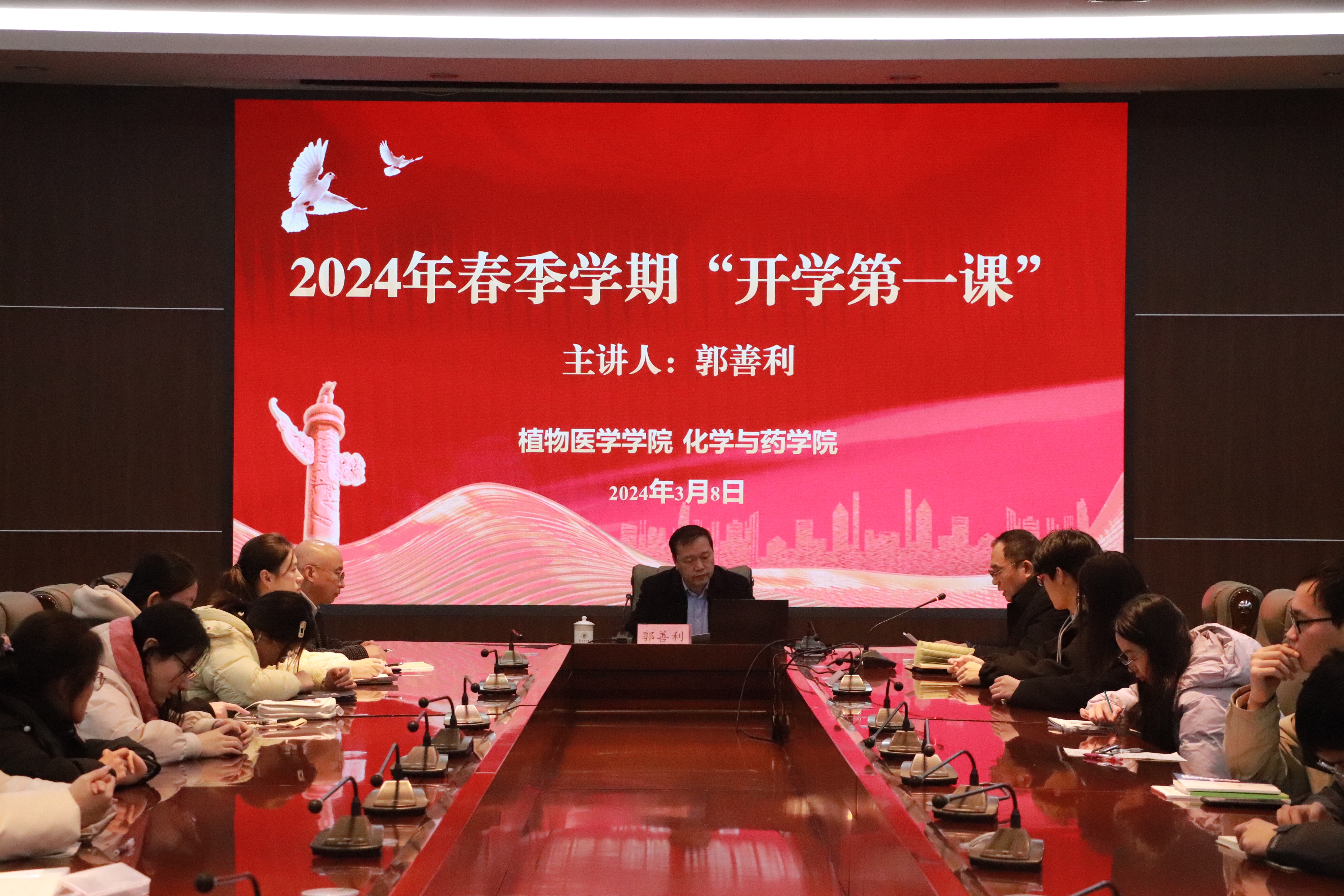 3月8日,校党委书记郭善利在青岛农业大学学术会馆会议厅为植物医学学院、化学与药学院学生上2024年春季学期“开学第一课”,植物医学学院党委书记韩强主持。